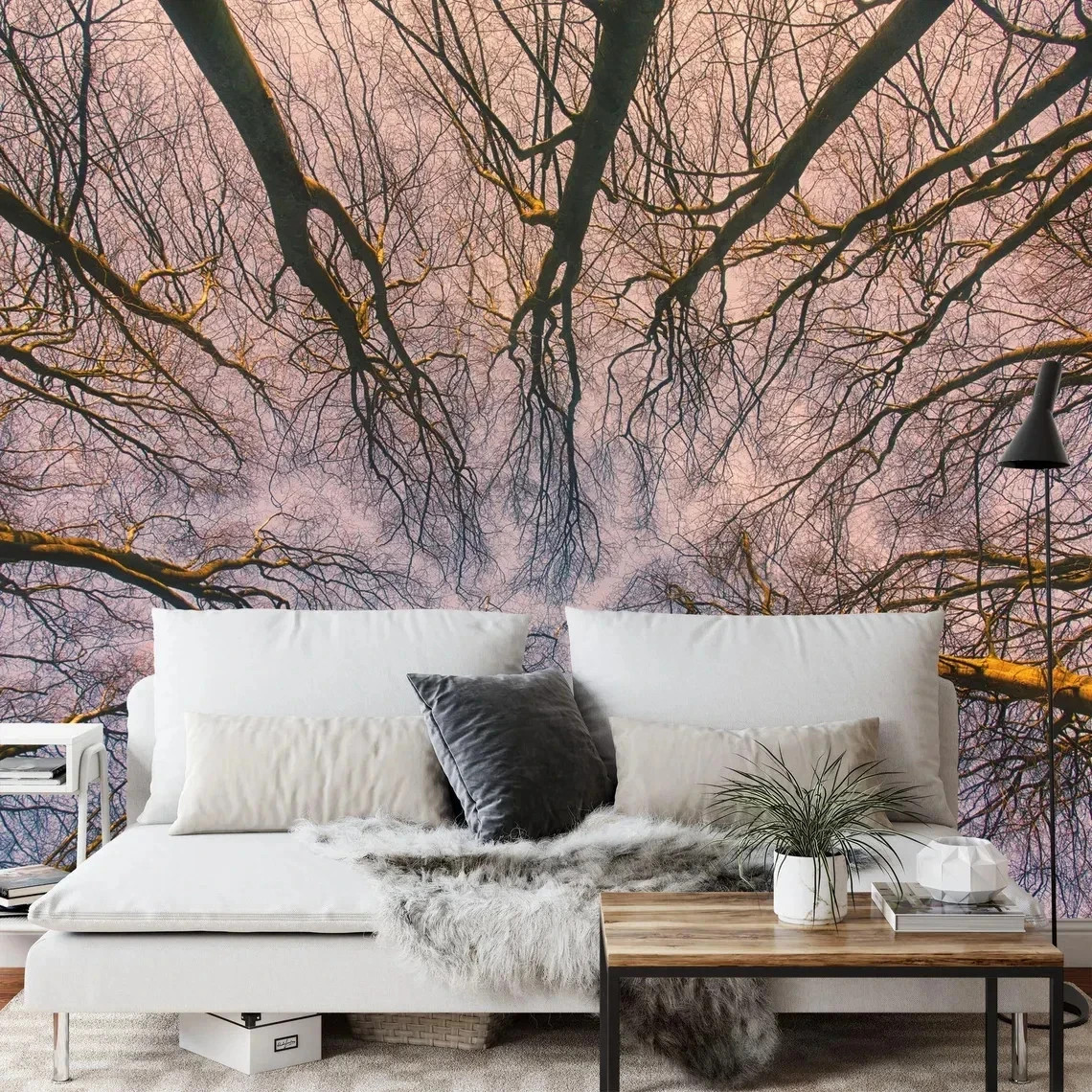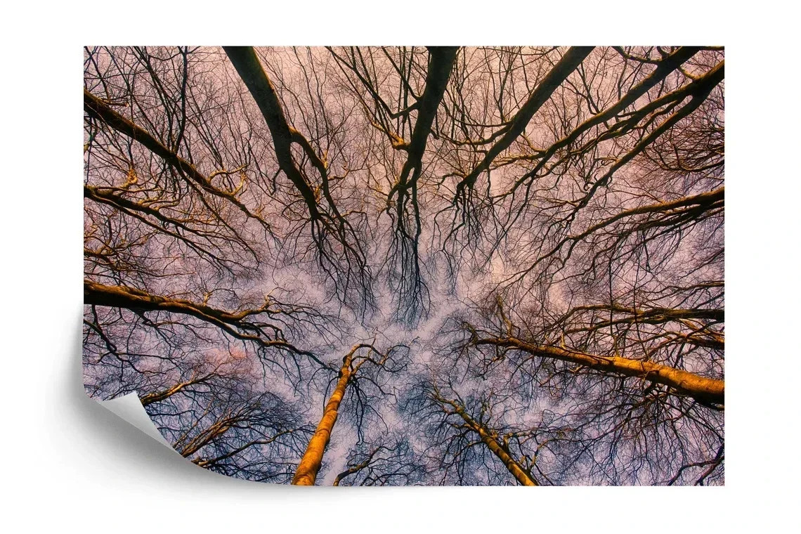 как выглядит Sunrise through the Forest Blue Wallpaper Mural Removeable Washable Peel Stick фото
