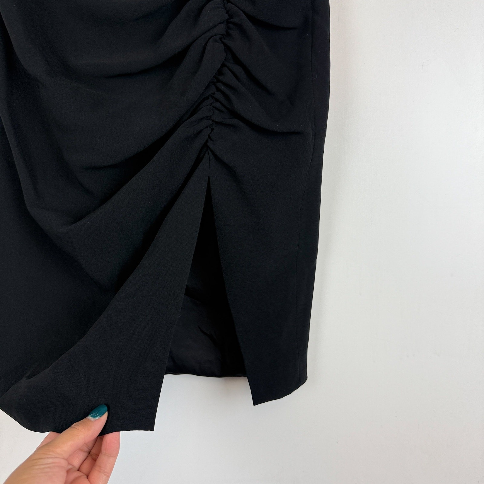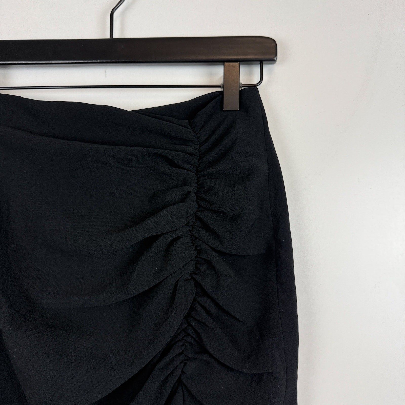 как выглядит Cinq A Sept Ruched Mini Pencil Black Skirt w Slit - 0 фото
