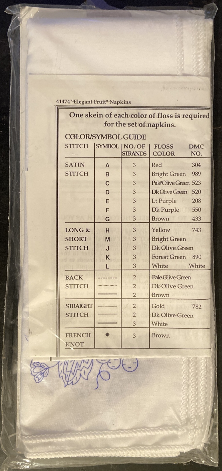 как выглядит Bucilla Stamped Embroidery 4 Napkins Set Elegant Fruit Vintage 1996 41474 new фото