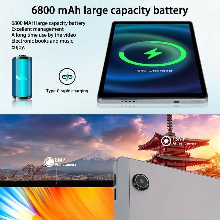 Android 14 Tablet 11 inch Screen 12 128GB WIFI 6800mAh IPS Display 6800mAh