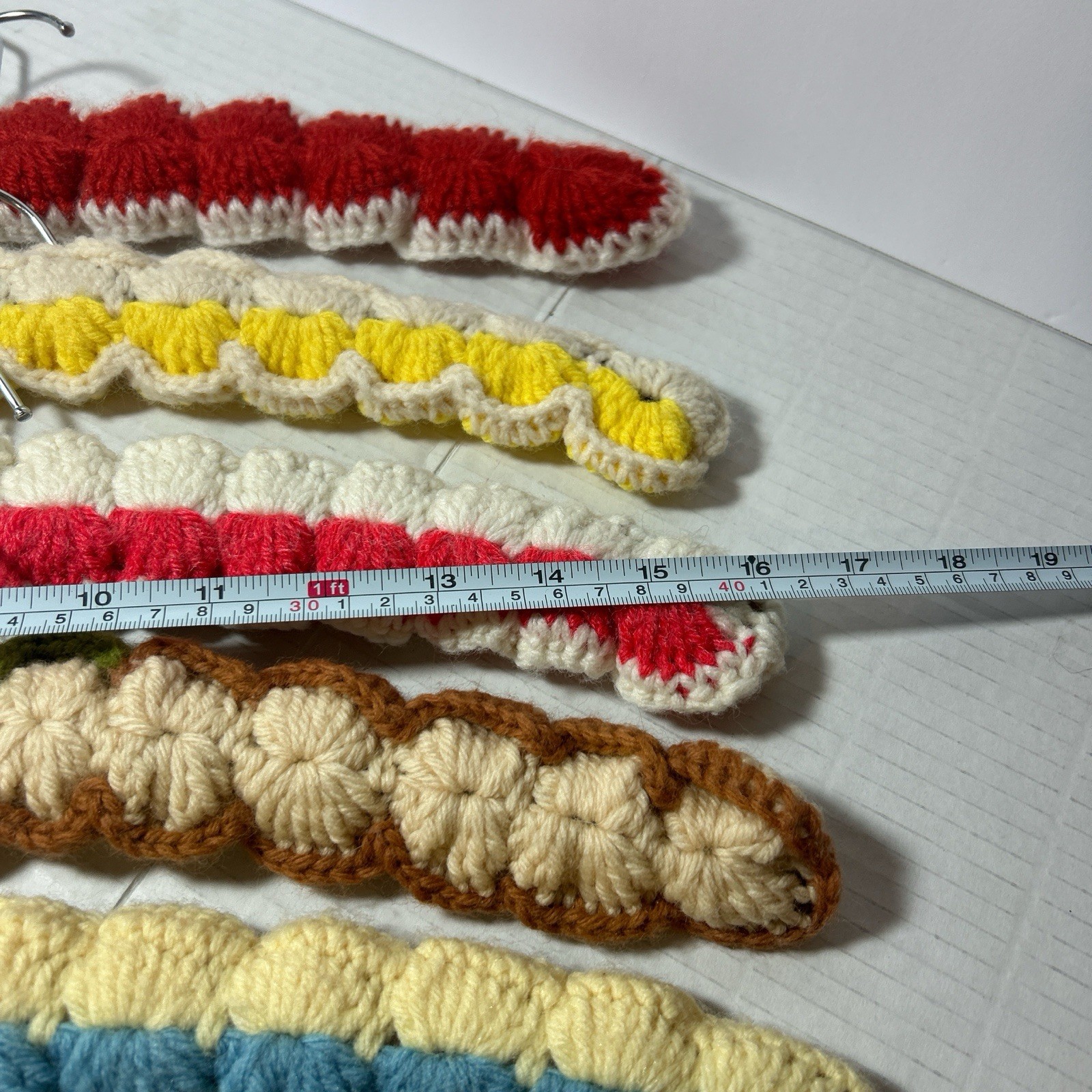 Five Vintage Colorful Crocheted Hangers Grannycore Retro Wardrobe EUC