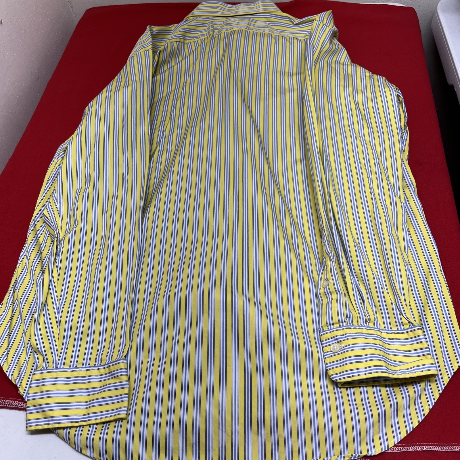 как выглядит Ralph Lauren Polo Dress Shirt Yellow Blue 16.5 34/35 Large Button up no logo фото