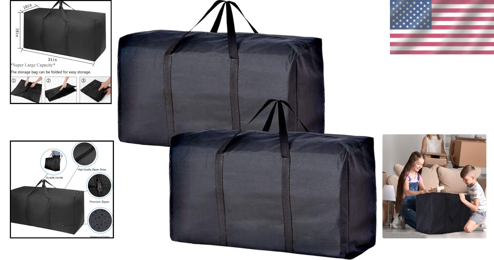 Sturdy Foldable 31'' Extra Large Storage Bags for Moving Traveling, 2 Pack