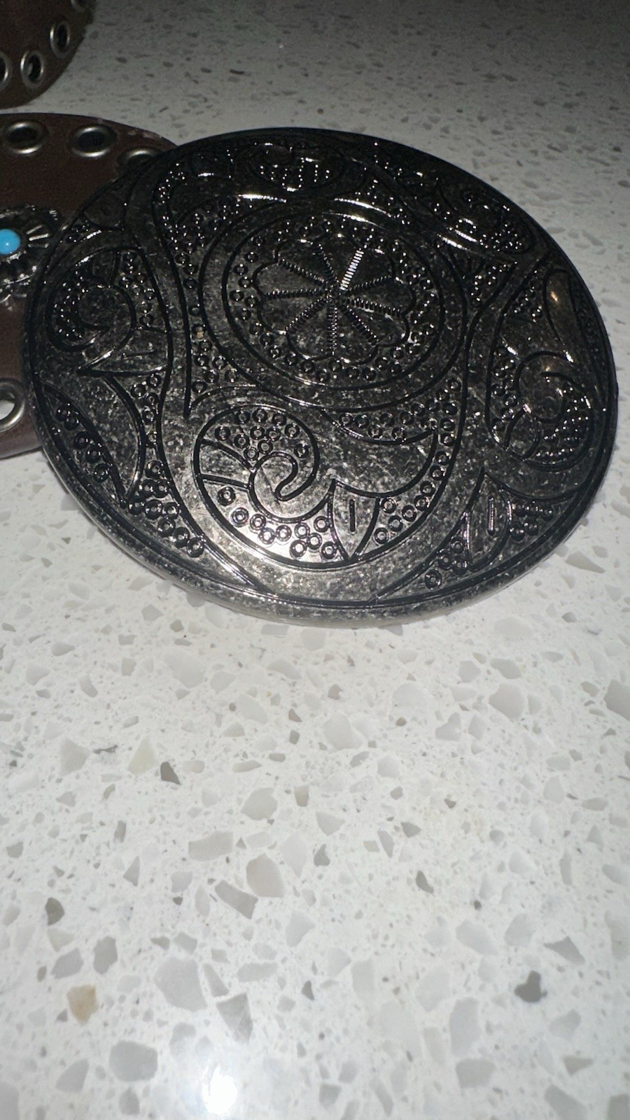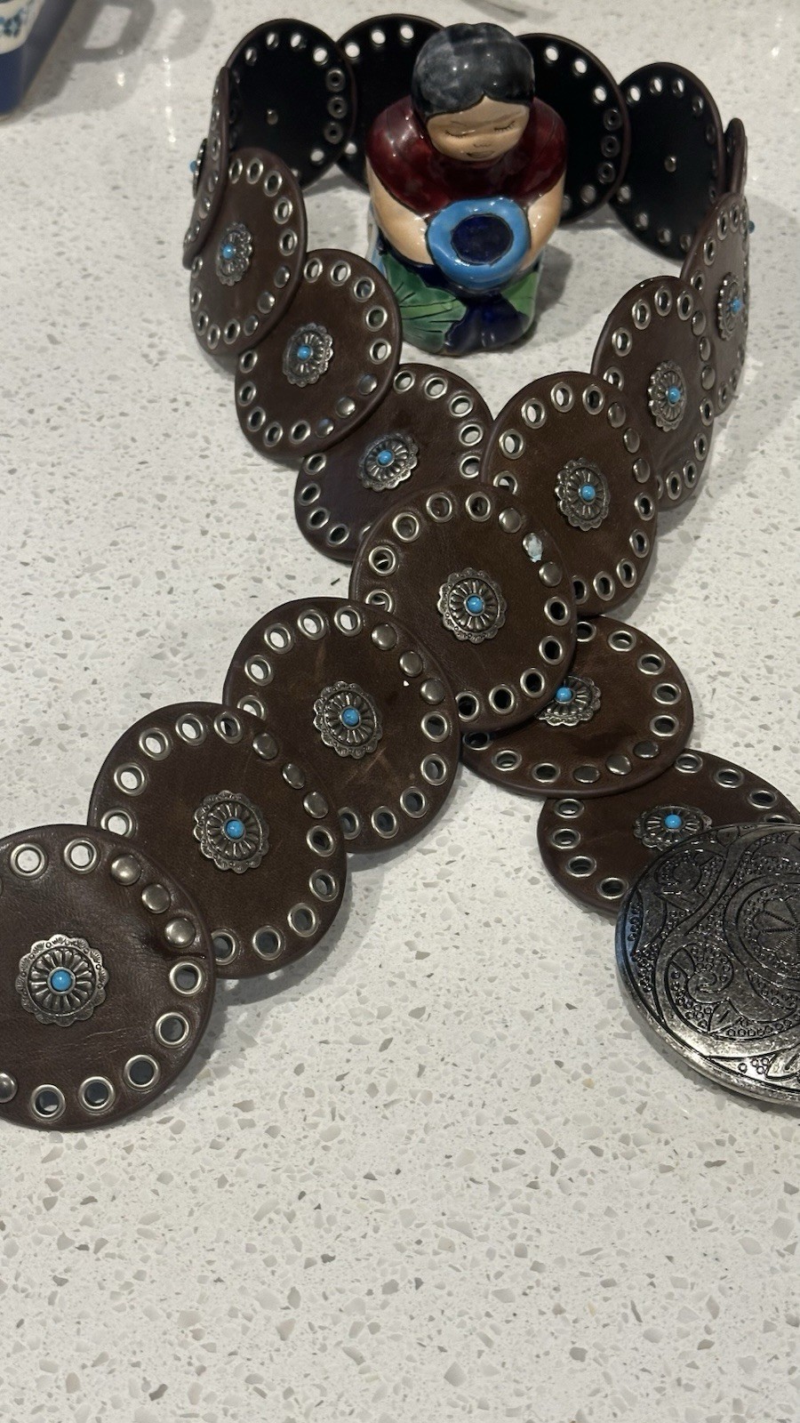 как выглядит Embellished Round Leather Women s Concho Belt XL фото
