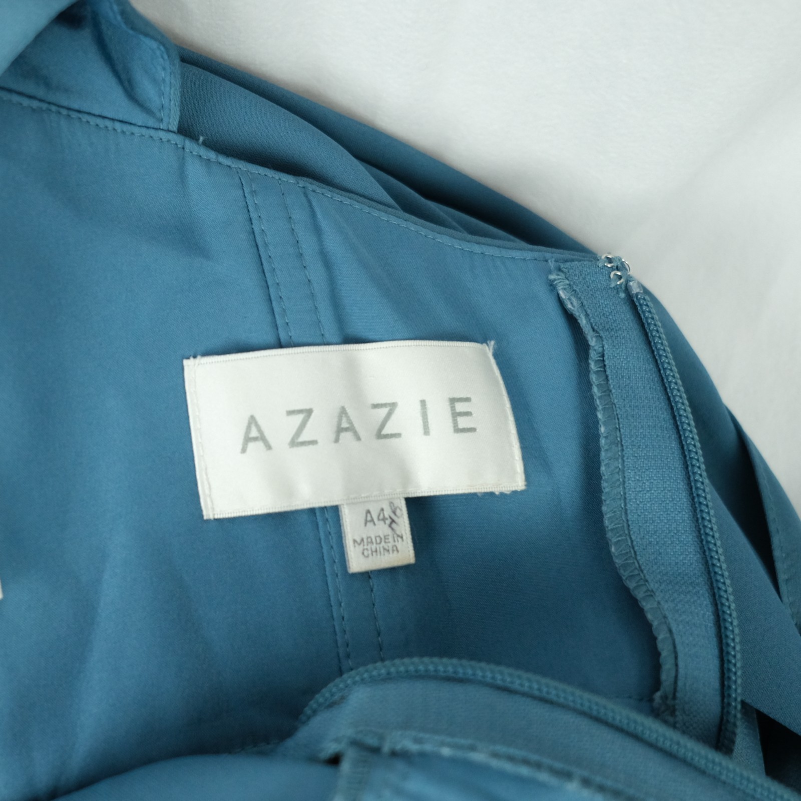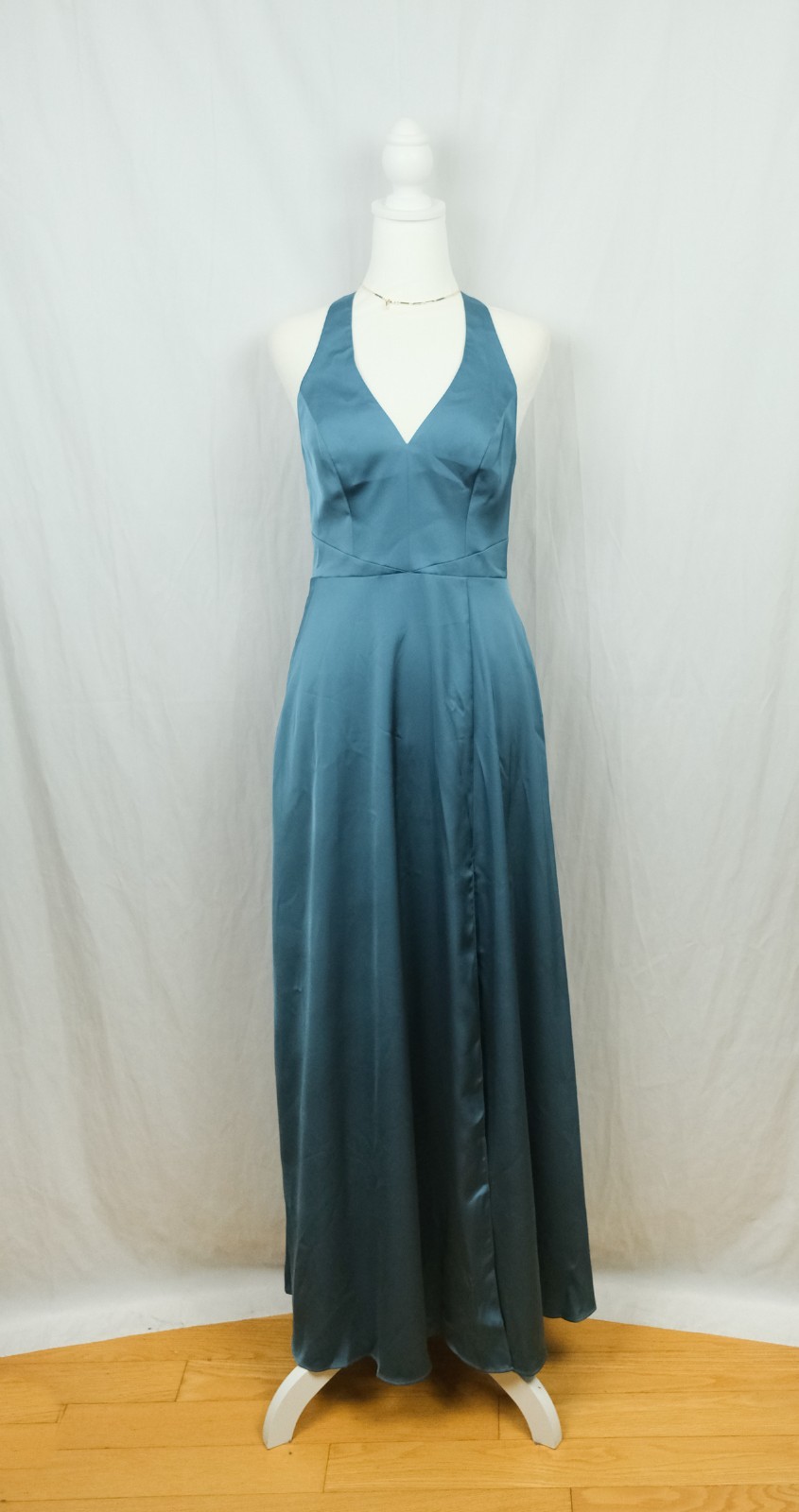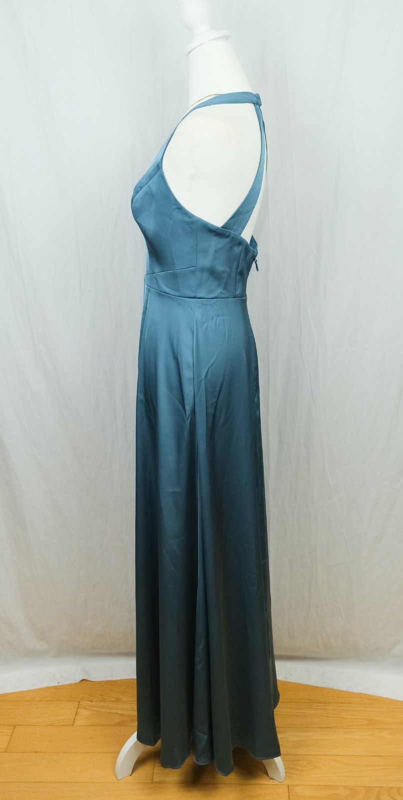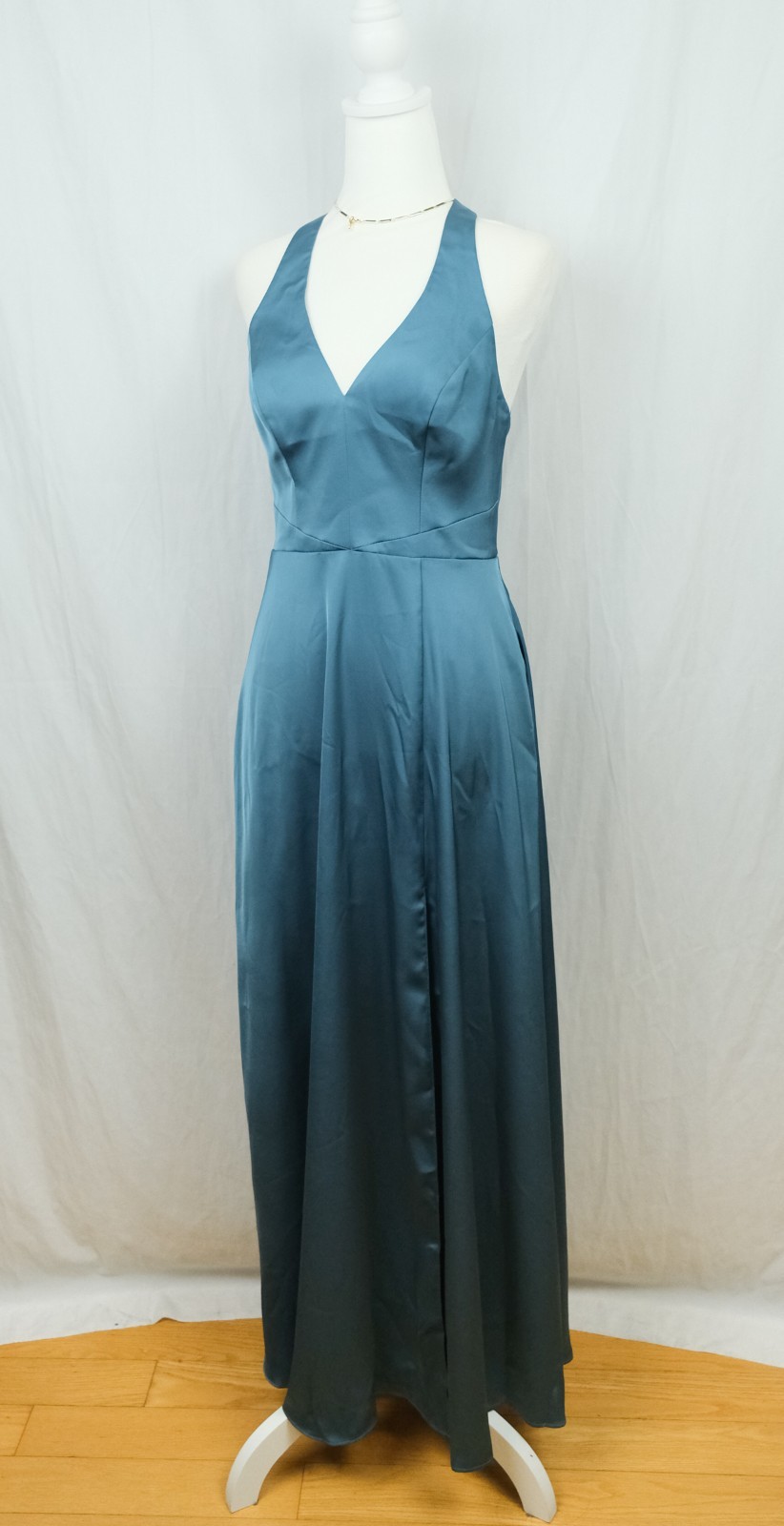 как выглядит Azazie A-Line Chiffon Halter Floor Length Dress Teal Size A4 фото