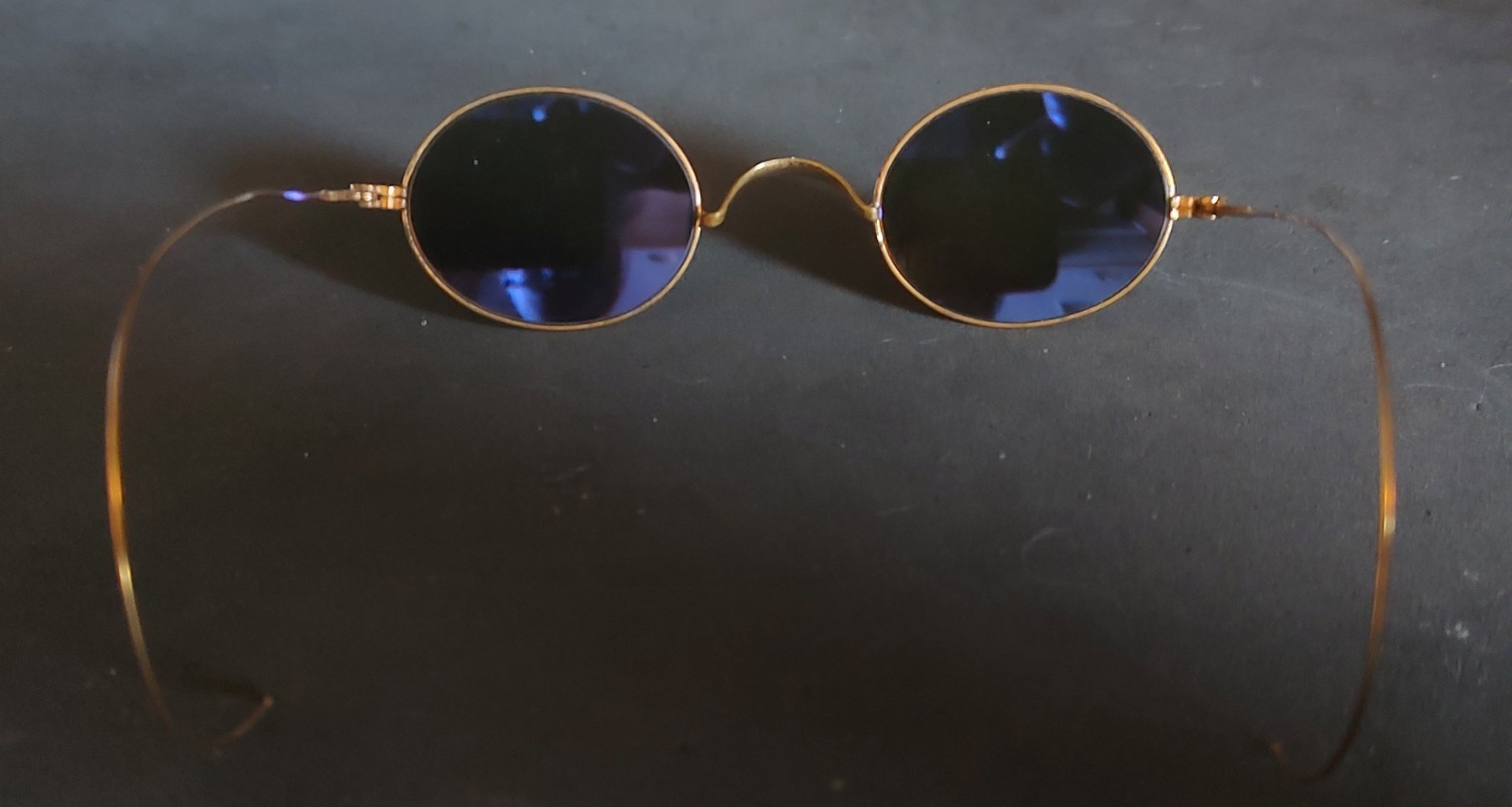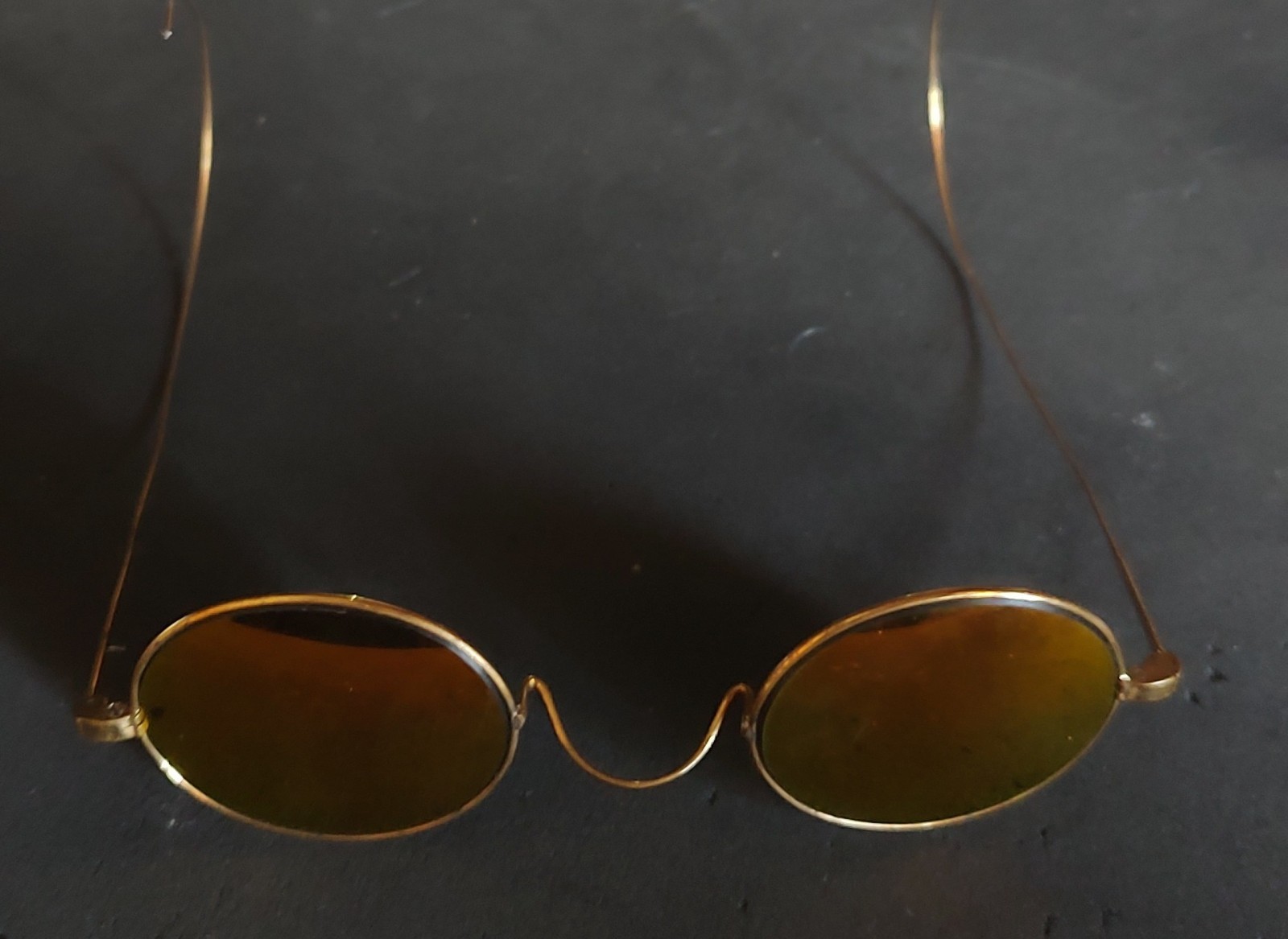 VINTAGE 1800s Sunglasses Oval Gold Metal Frame / New Mirror Orange Lenses