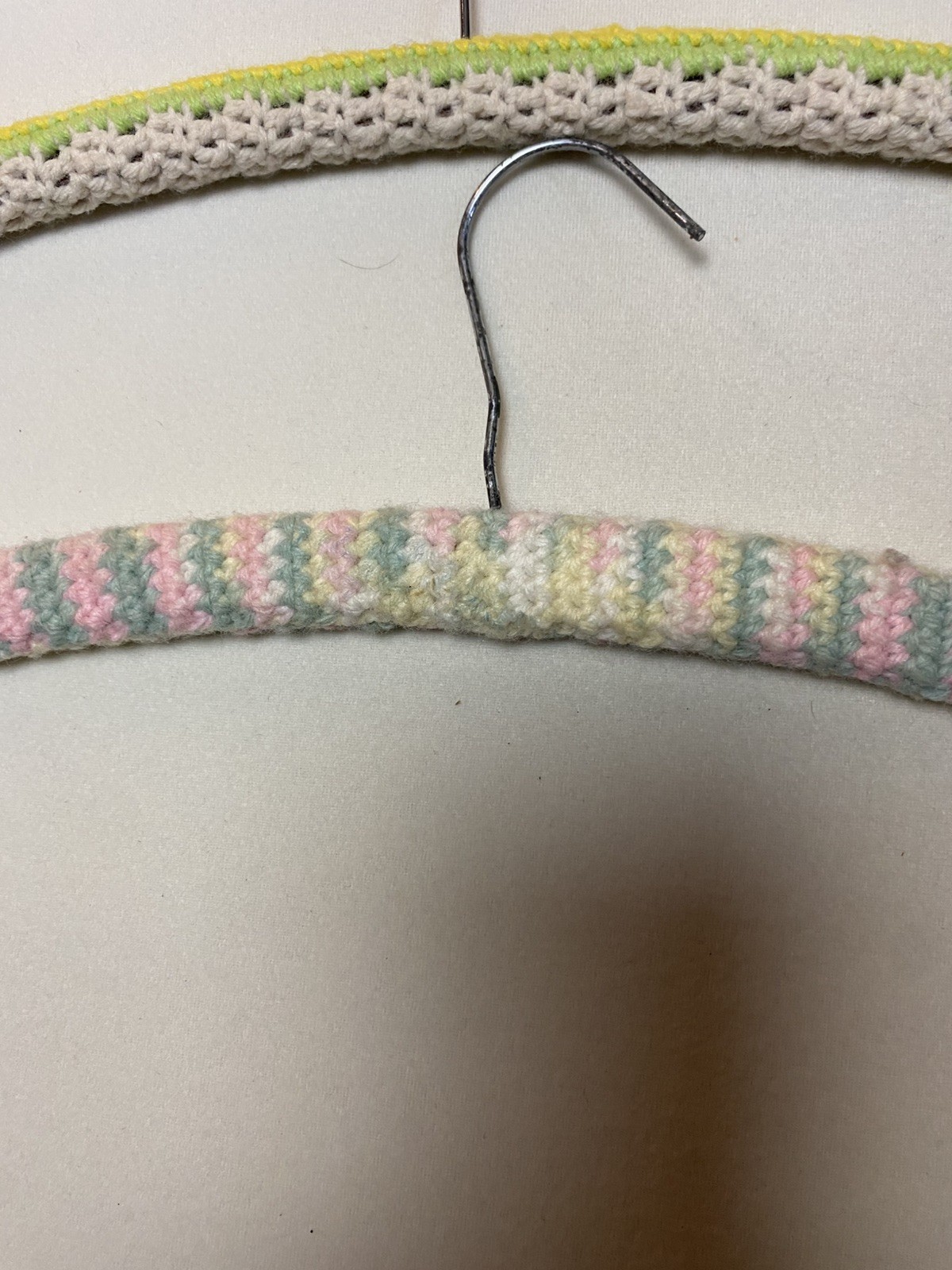 5 Vintage Retro Crochet Hangers Art Deco Yellows Pink/Blue