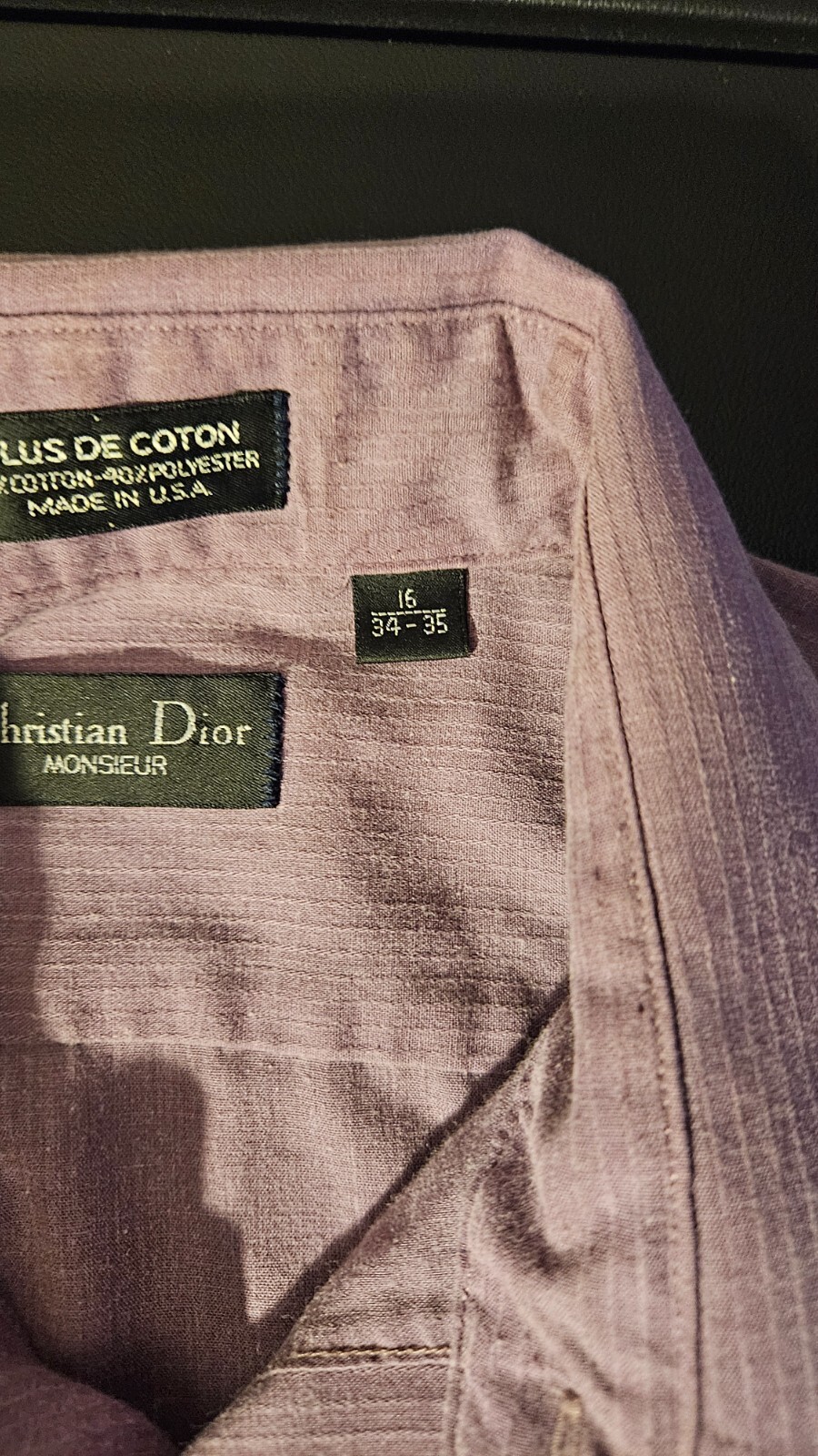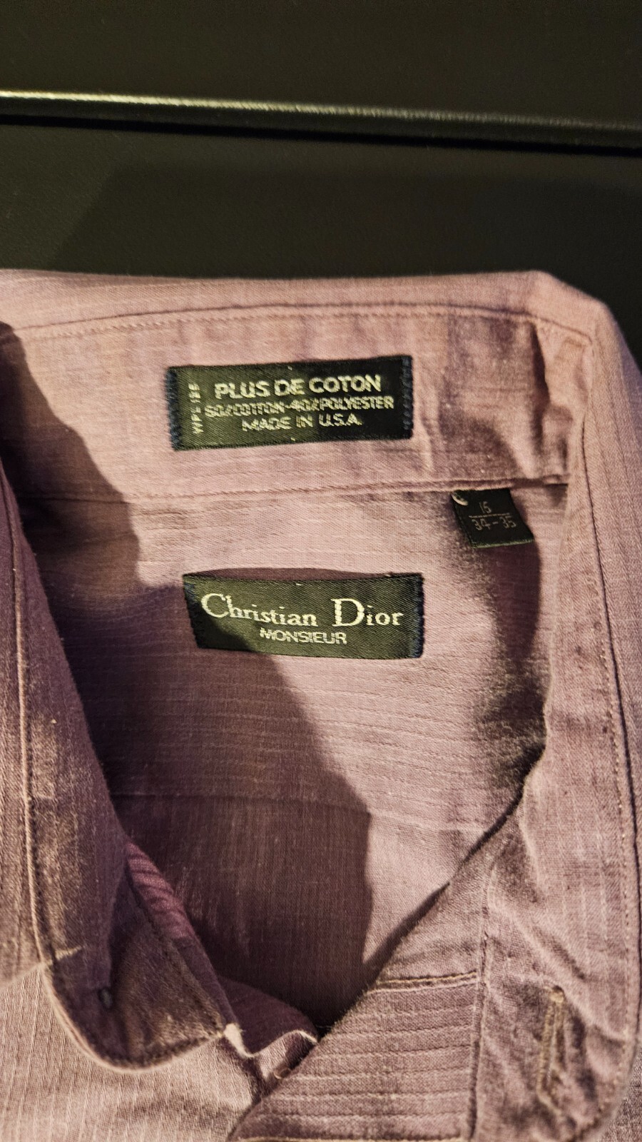 как выглядит Christian Dior Monisieur Made USA Mens Size 16 34-35 Purple Long Sleeve Dr Shirt фото