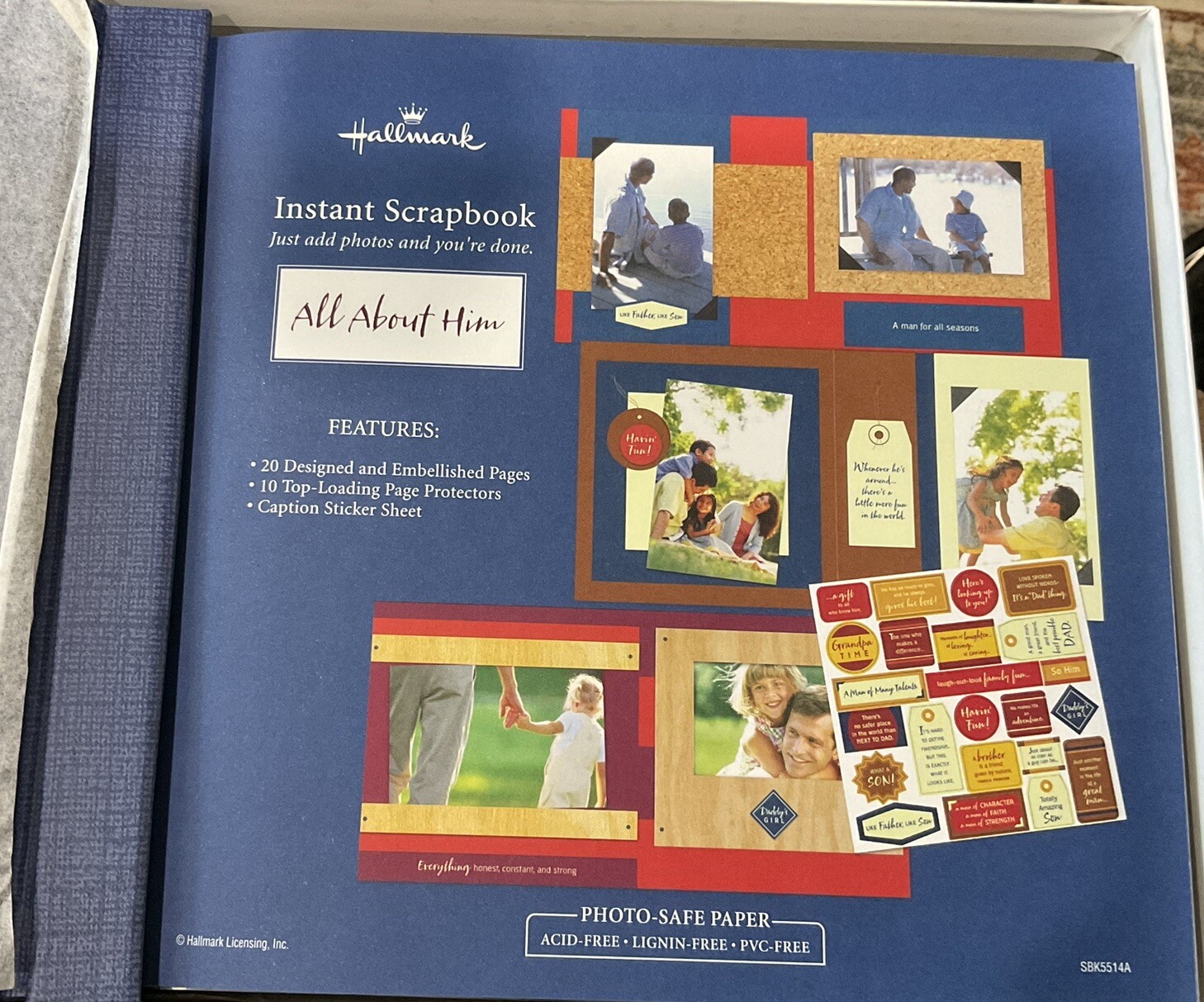 New Hallmark Instant Scrapbook Album 20 Designed Pages All About Him 8x8