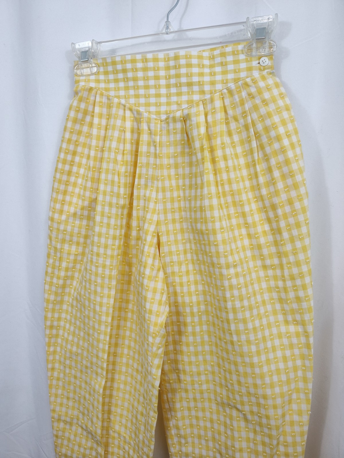 VTG 70's 80's Main Sport Pants Women's Junior sz 3 Yellow White Gingham Pleated