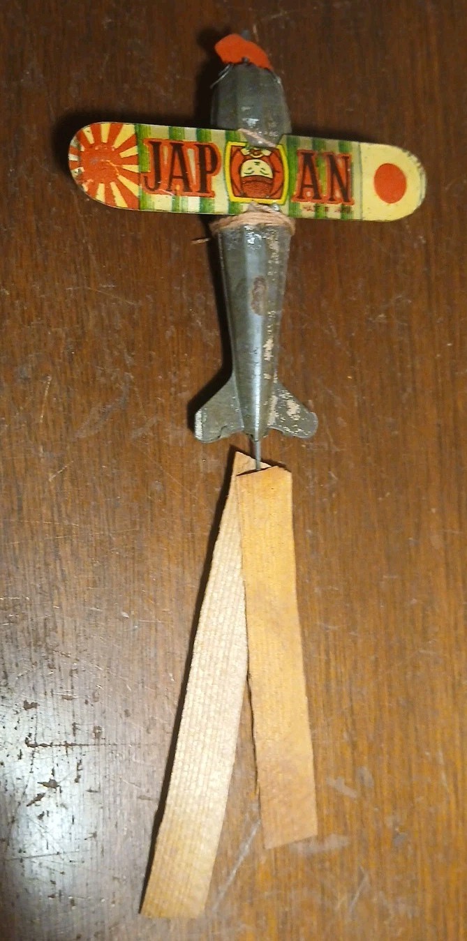 как выглядит Old Pre War Japan Tin Spinner Airplane Toy With Japanese Flag Graphics фото