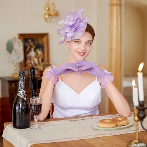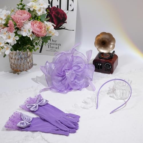 Fascinators Hat Flower Mesh Feathers Headband Derby Hat One Size Light Purple