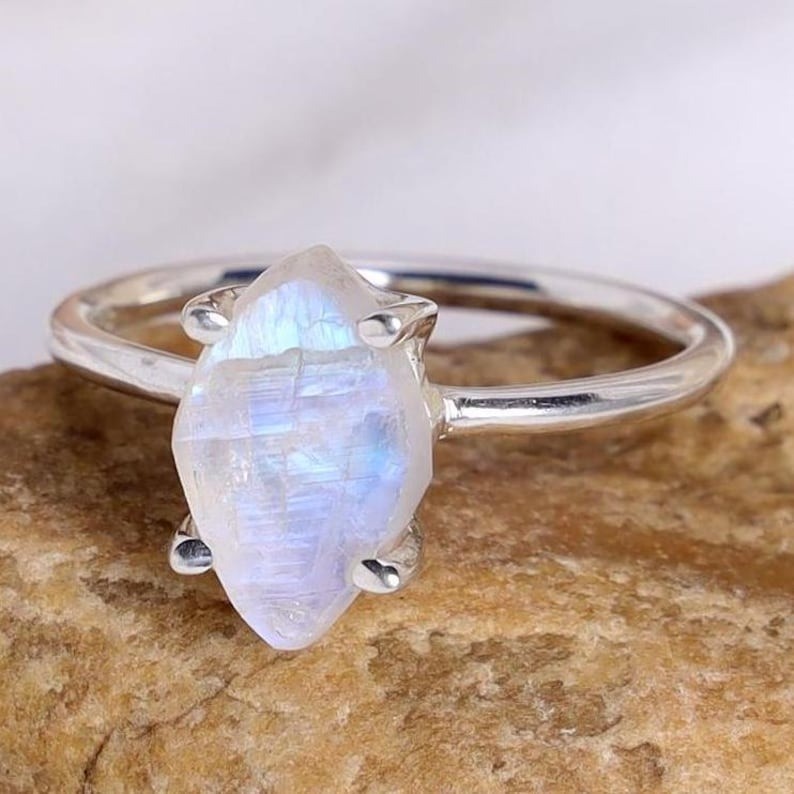 как выглядит Raw Moonstone Ring, 925 Sterling Silver Ring, Handmade Ring, Blue Fire Moonstone фото