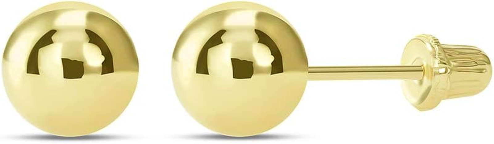 14K Yellow Gold Round Ball Stud Earrings with Secure Screw Back Closure