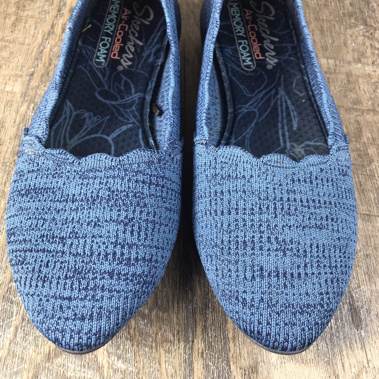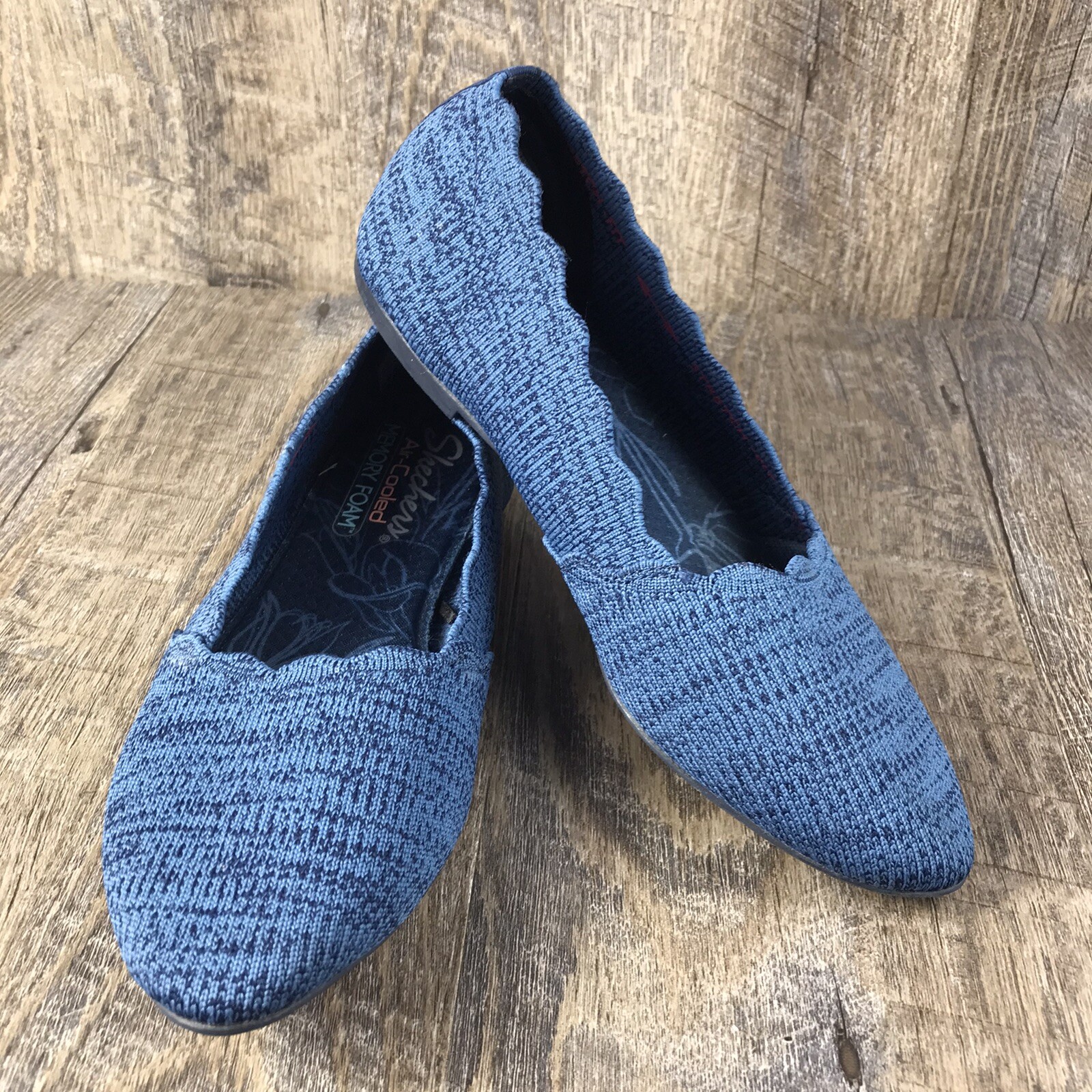 Skechers Cleo Newford Ballet Flats Womens 6.5 Blue Memory Foam Stretch Vegan