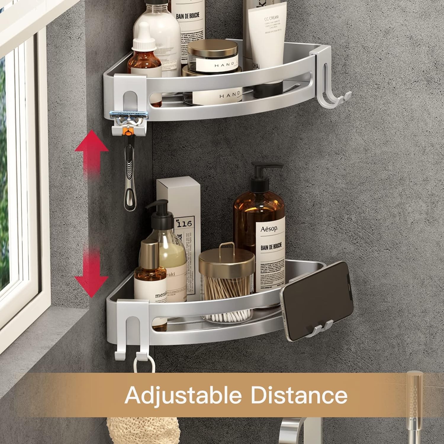 Corner Shower Shelves with Hooks Shower Storage Rack Rustproof Tub Organizer