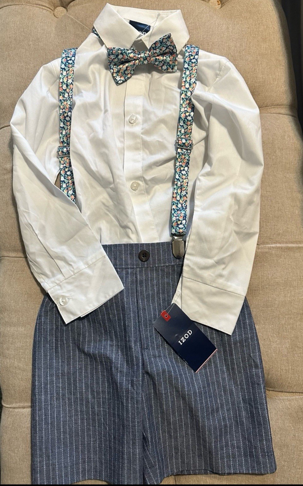 IZOD Ring Bearer Boys 5T Suit Outfit Bow Tie Set Wedding Formal Shorts Button Up