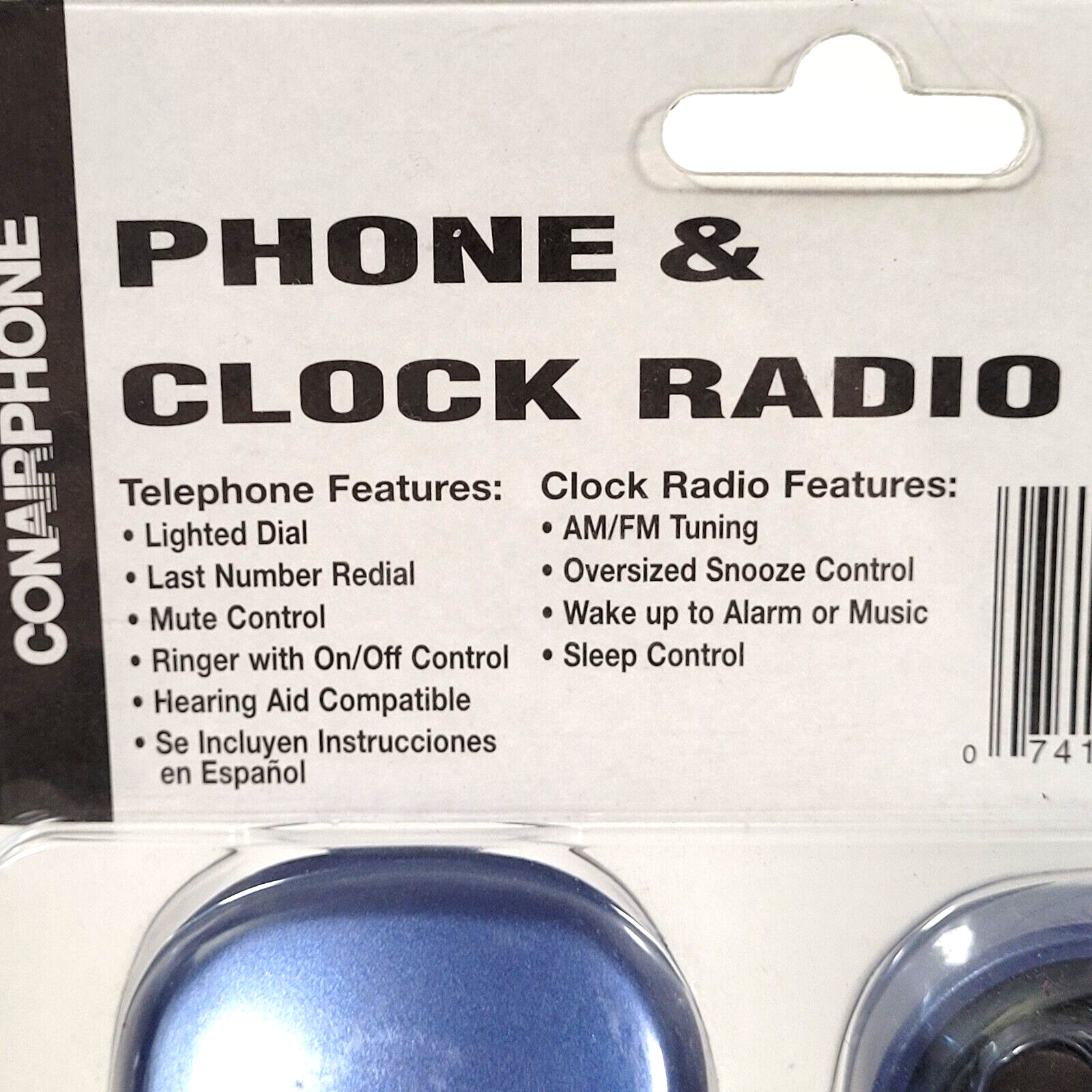 VINTAGE CONAIR TCRCB10MB CORDED PHONE ALARM CLOCK SET MATALLIC BLUE NOS SEALED