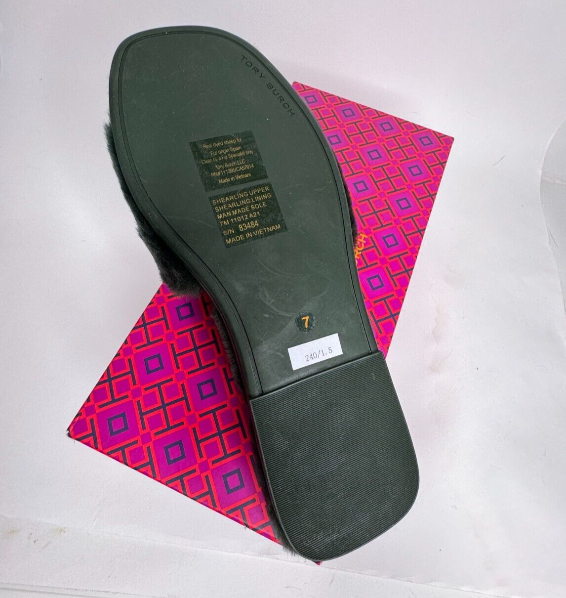 Tory Burch Double T Shearling Slides Sandal Militare Green Gold Leather 7 NIB