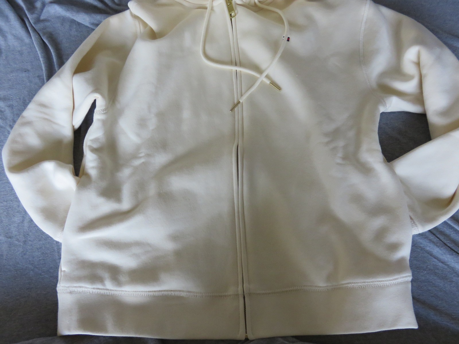 как выглядит TOMMY HILFIGER Hoodie Womens XS Cream Full Zip Hoodie FLAW фото
