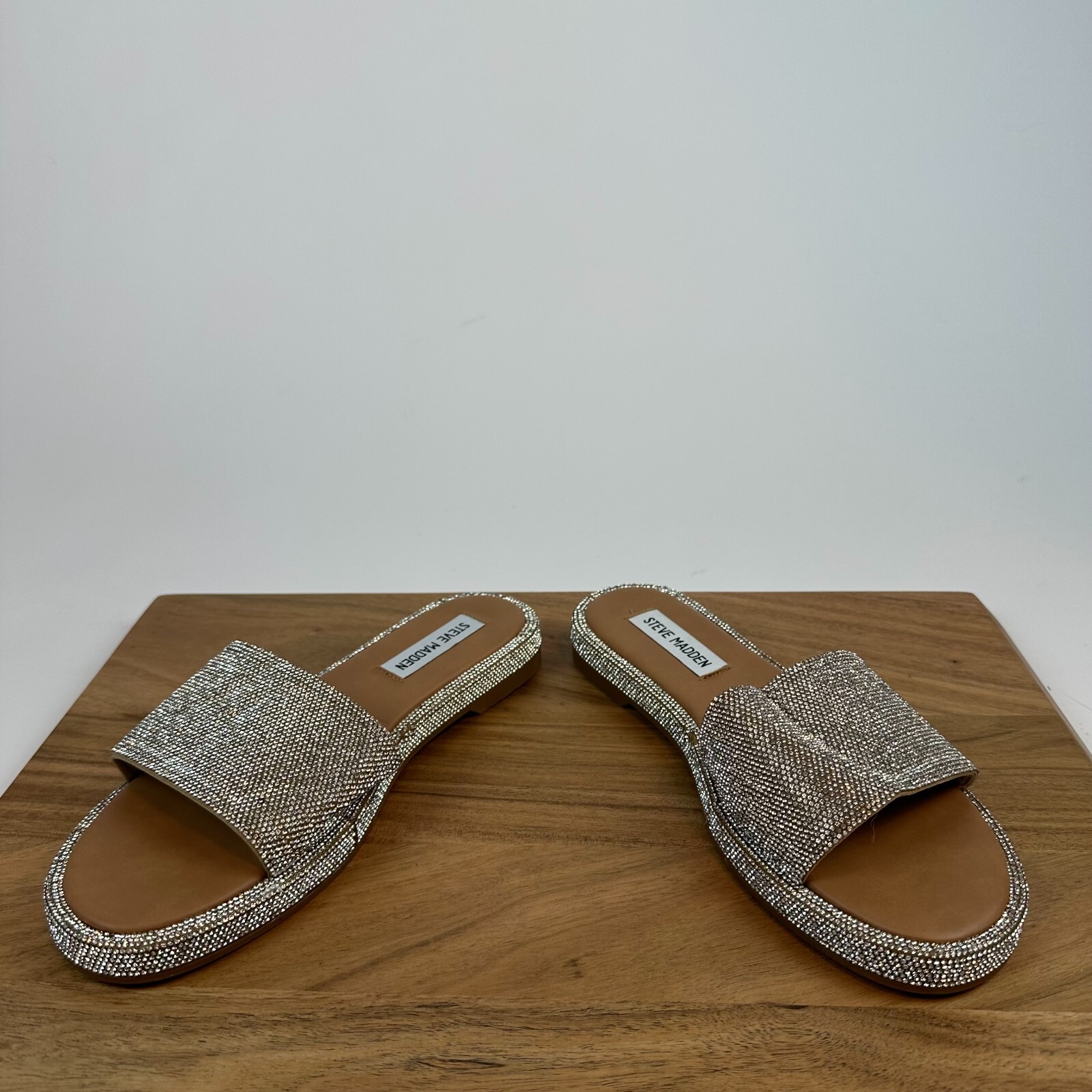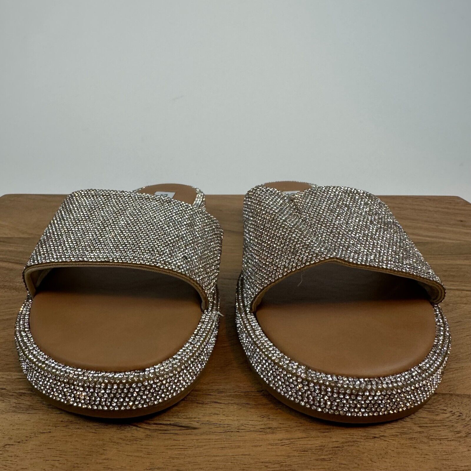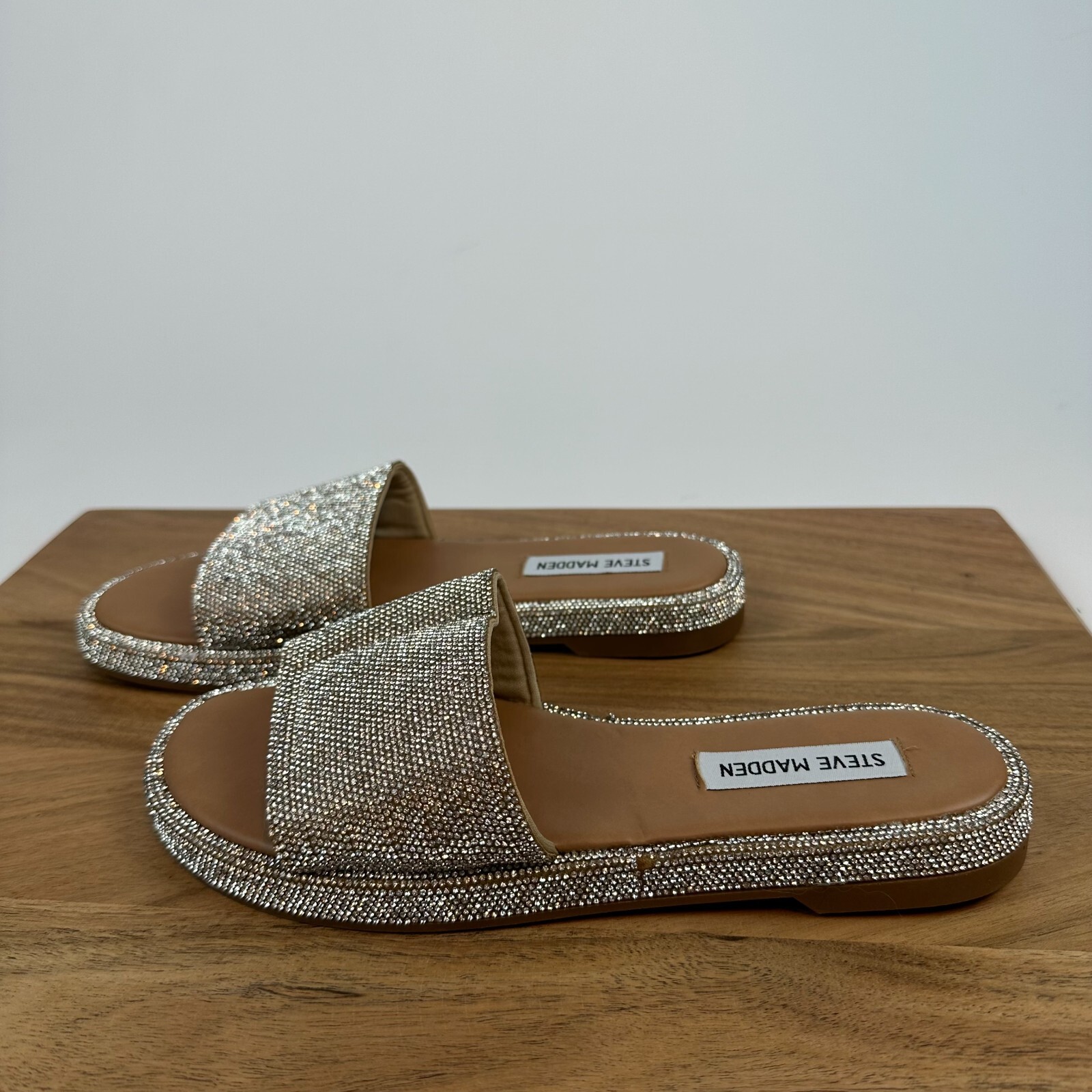 New NWOB Womens Steve Madden Rubee Silver Bejeweled Slides Sandals Size 6 M