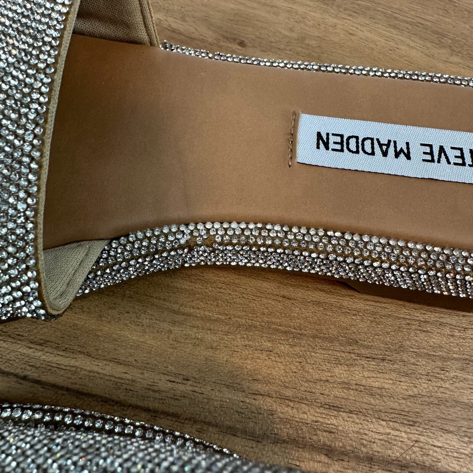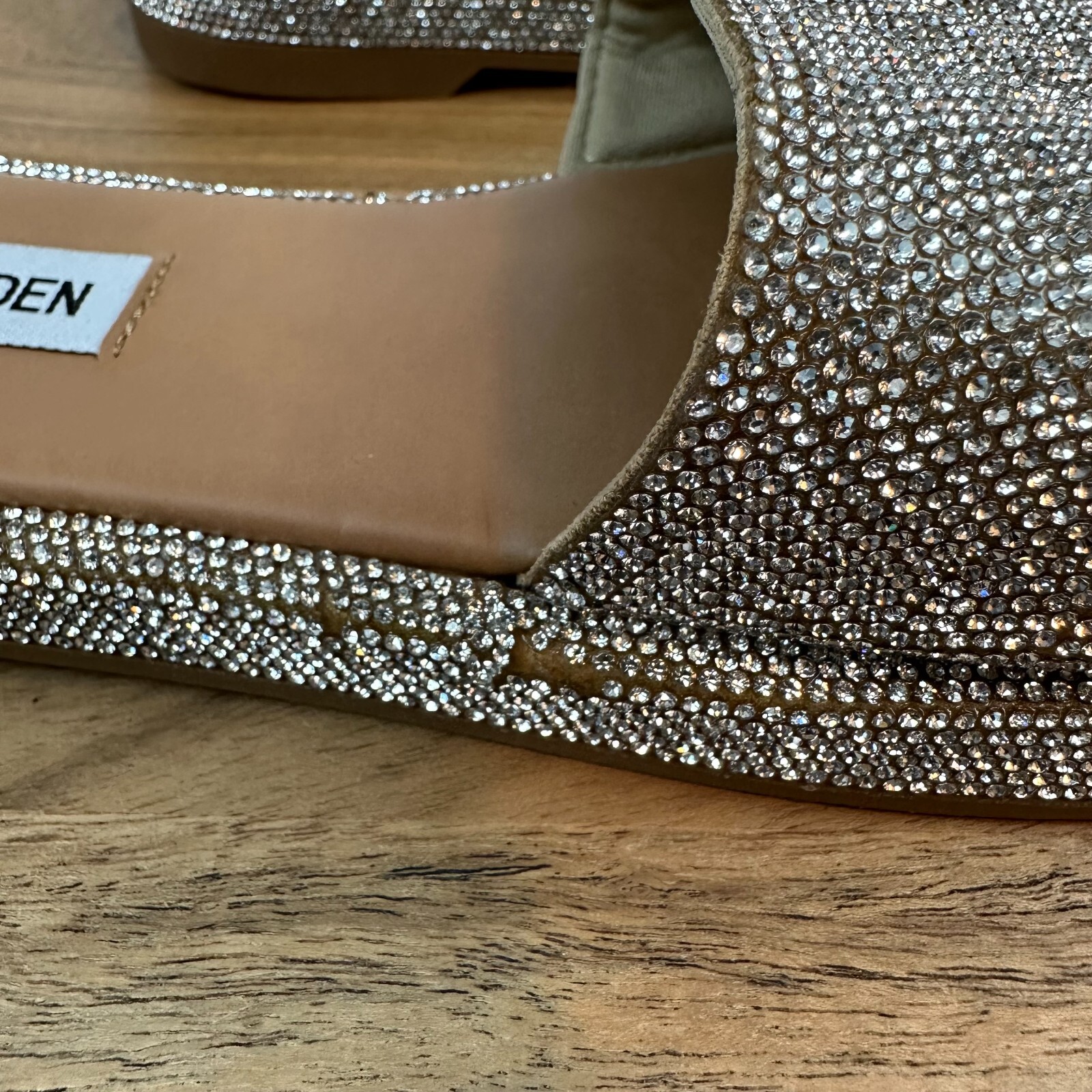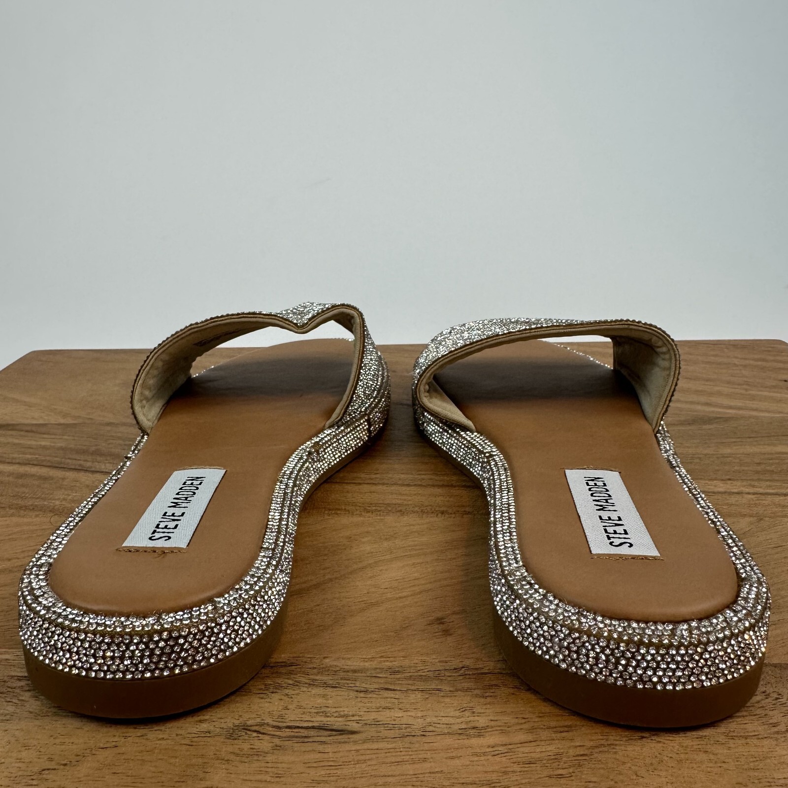 New NWOB Womens Steve Madden Rubee Silver Bejeweled Slides Sandals Size 6 M