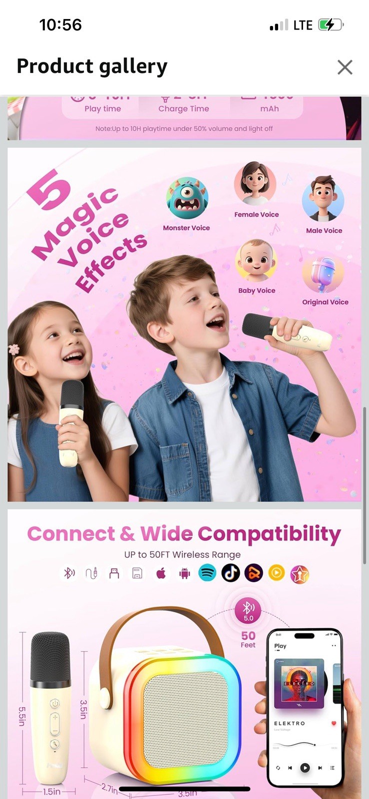 как выглядит Peski Mini Karaoke Machine for Kids Singing Bluetooth Speaker with Microphone фото