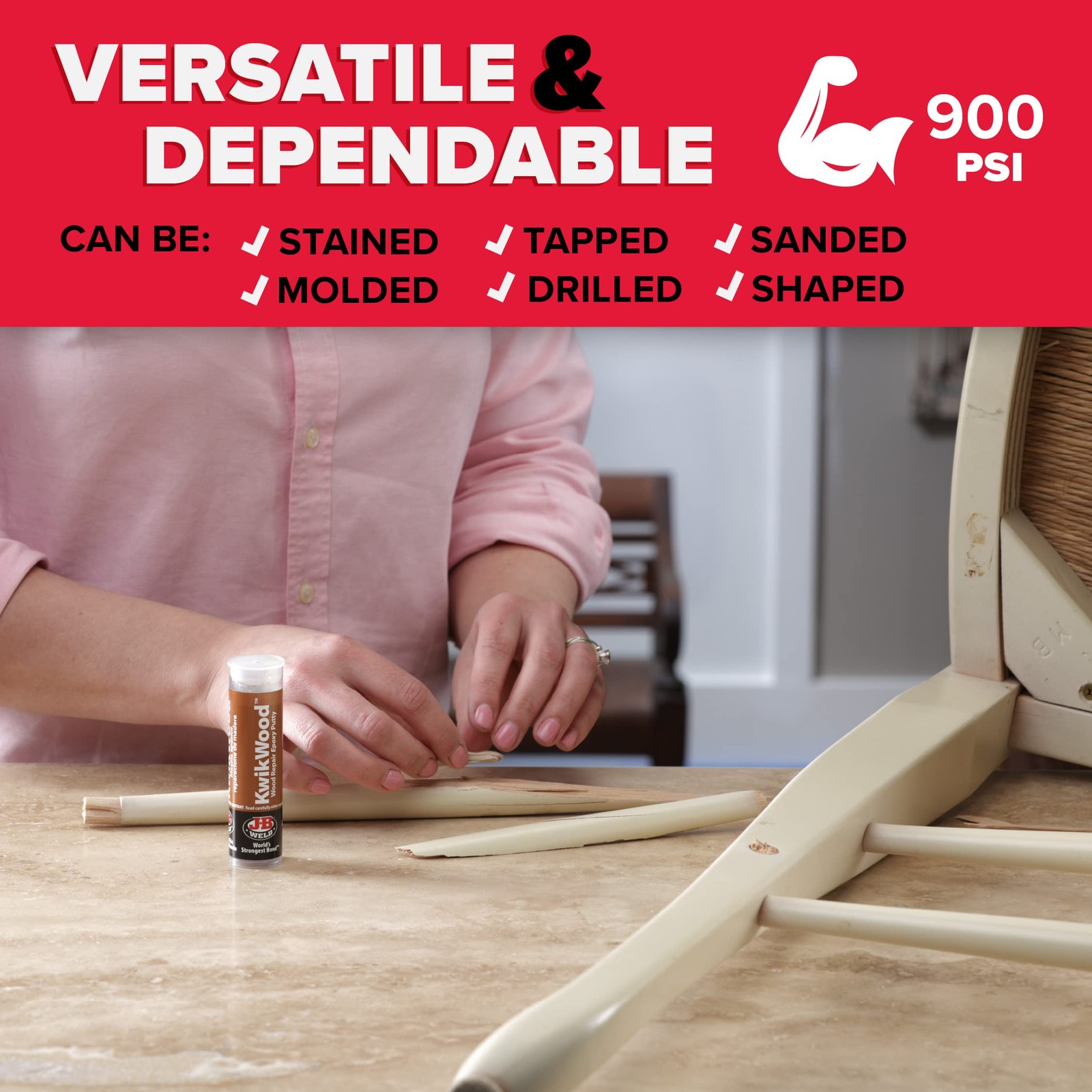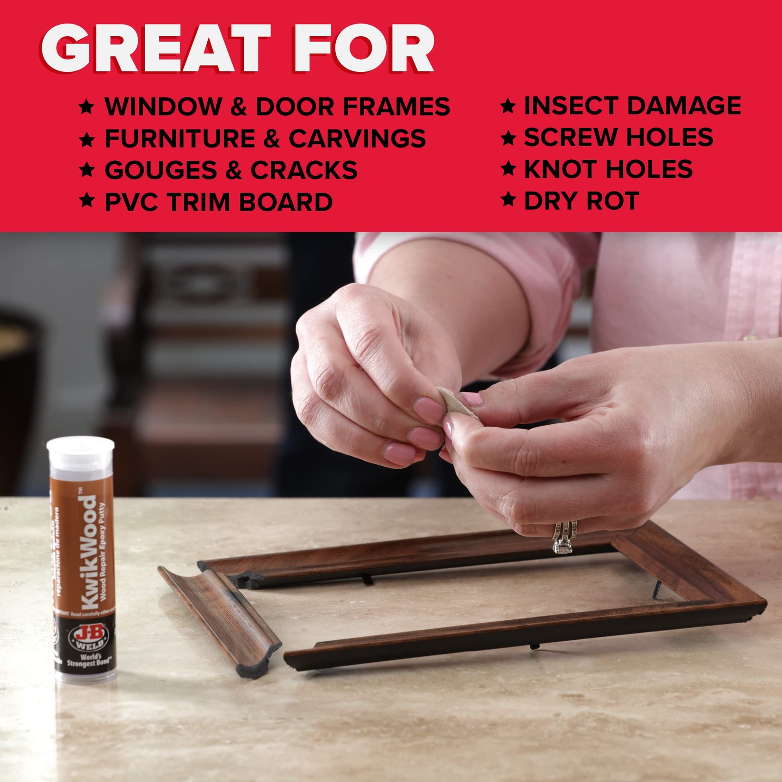 Tan Wood Epoxy Putty Stick for Repair Interior Exterior 1 oz Cures in One Hour