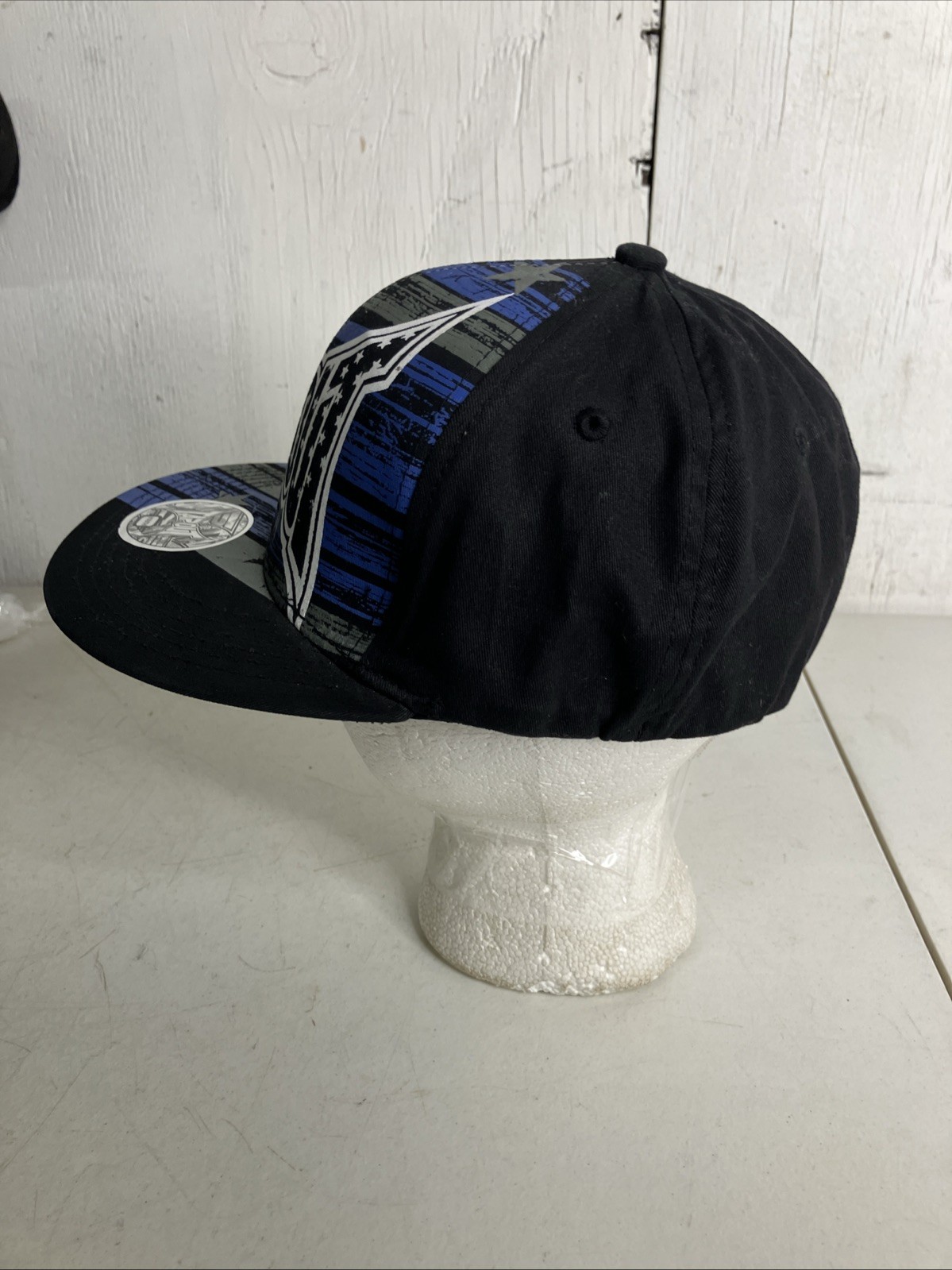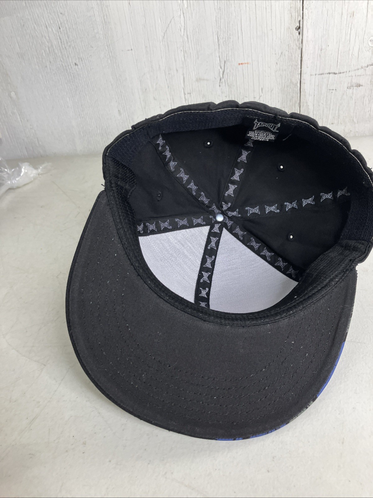 TAPOUT Flex Hat Youth Black And Blue Flat Bill Large Font Sticker Cap