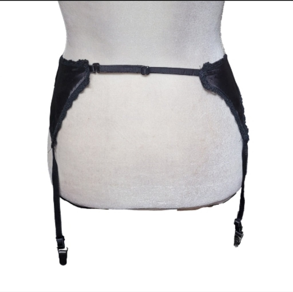 как выглядит Fredericks Of Hollywood Nan Flower Sheer Black Lace Corset Garter Belt Set L фото