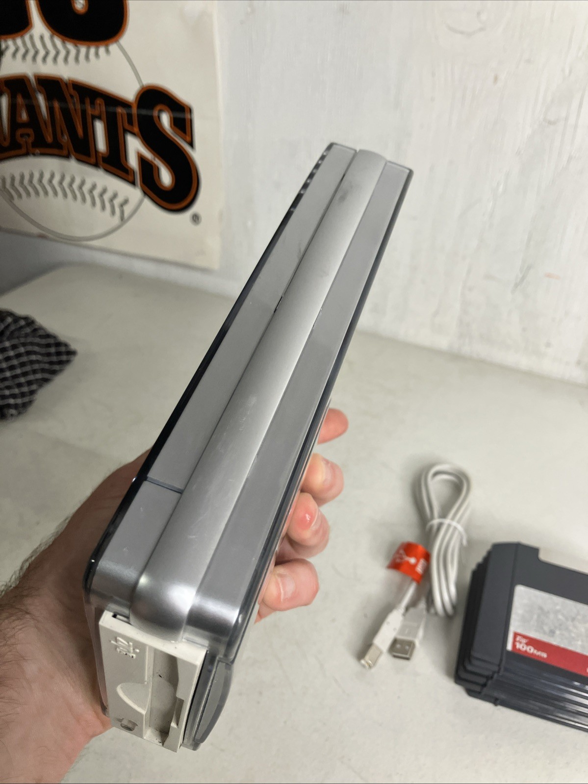 как выглядит Iomega Zip 100 USB-Powered External Drive Silver Clear Translucent Shell W/ Disc фото