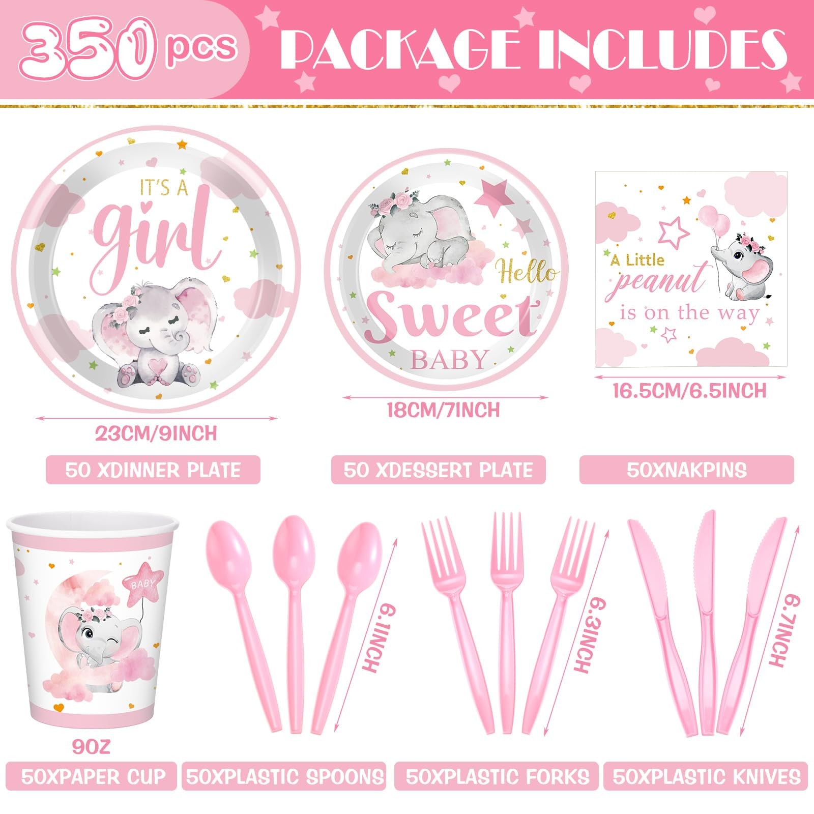 350 Pcs Baby Shower Plates Set Baby Shower Party Supplies Serves 50 Tableware...