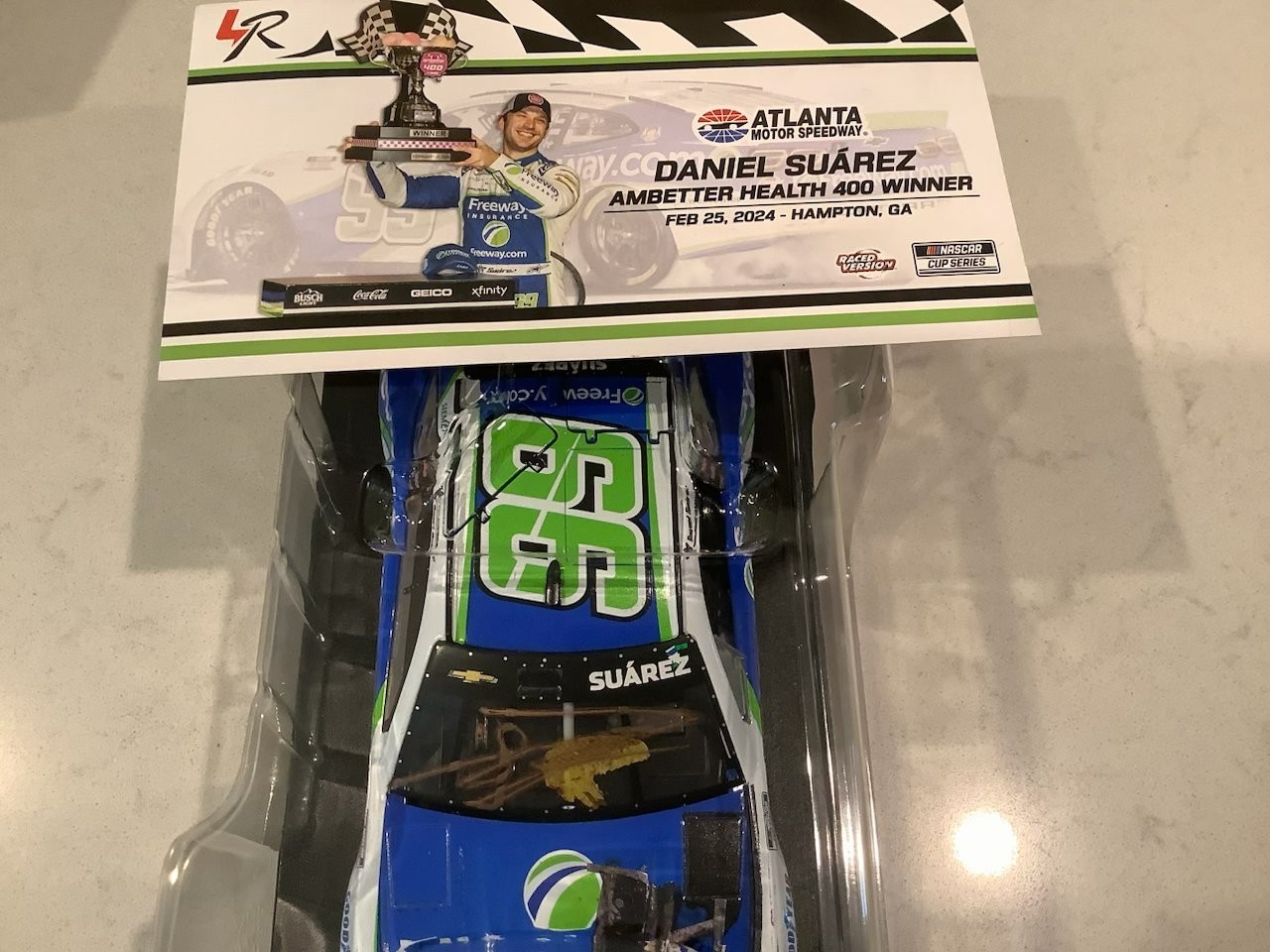 как выглядит DANIEL SUAREZ AUTOGRAPHED 2024 CHEVY FREEWAY INSURANCE ATLANTA WIN DIECAST CARD фото