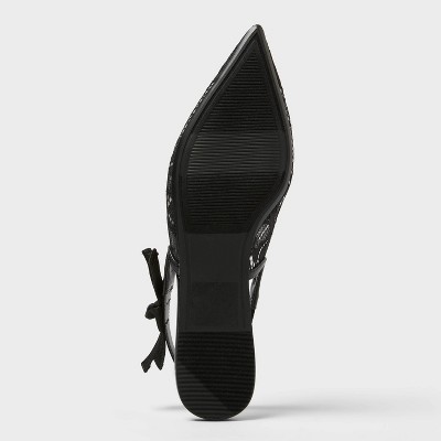 Women's London Lace Sling Back Bow Flats - A New Day Black