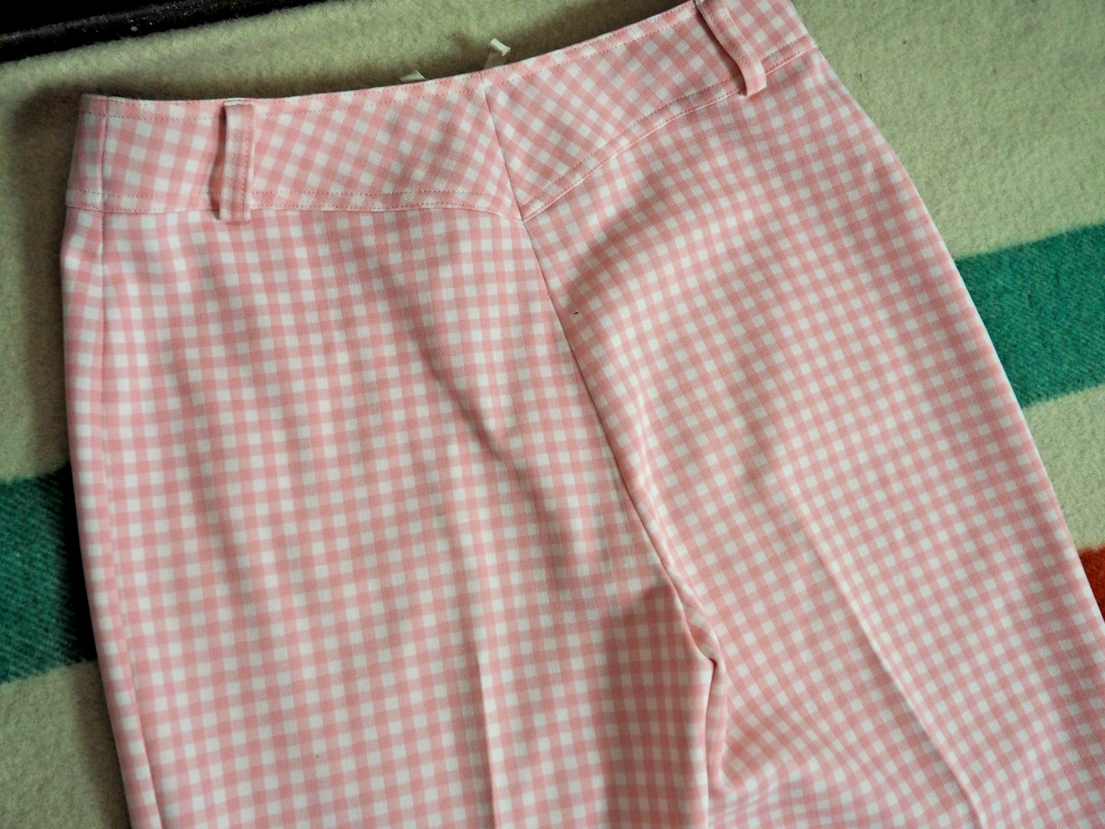 как выглядит VTG 70s Pink White Gingham Plaid Coattage Boho Hippy 32x30 Flare Poly Pants фото