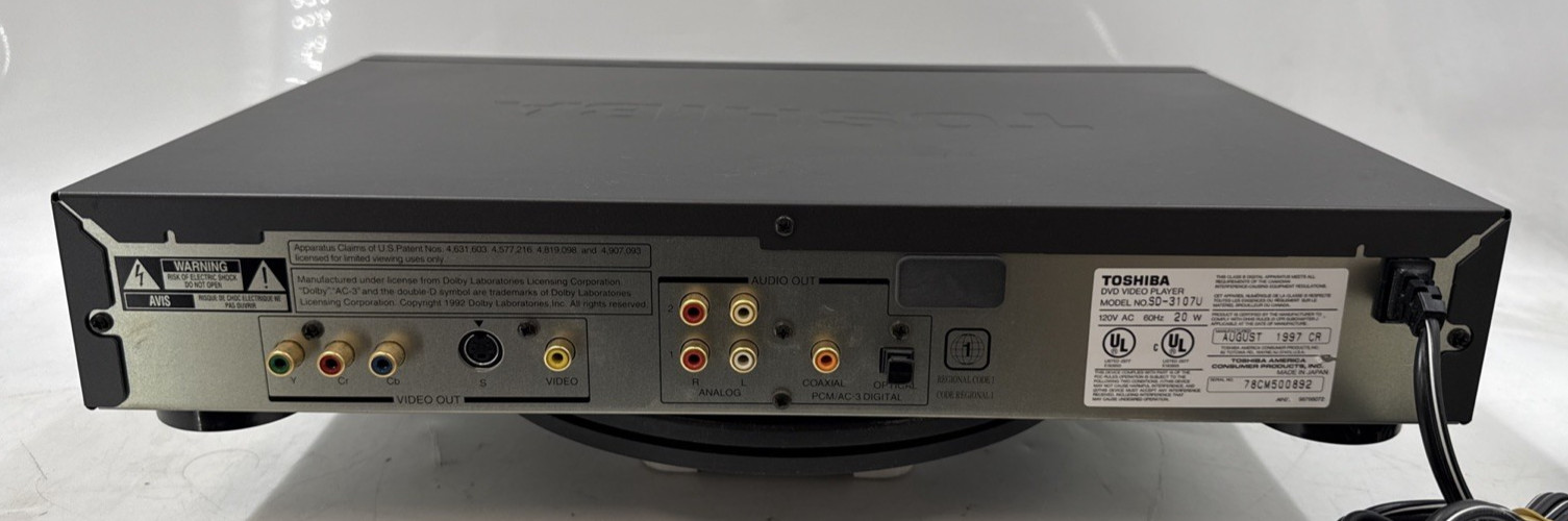 Toshiba SD-3107U DVD Player - Tested Comes w/Remote and RCA Cables EB-19138