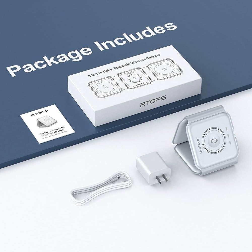 Wireless Charger 3 in 1,RTOPS Magnetic Travel Wireless Charging Station Multiple