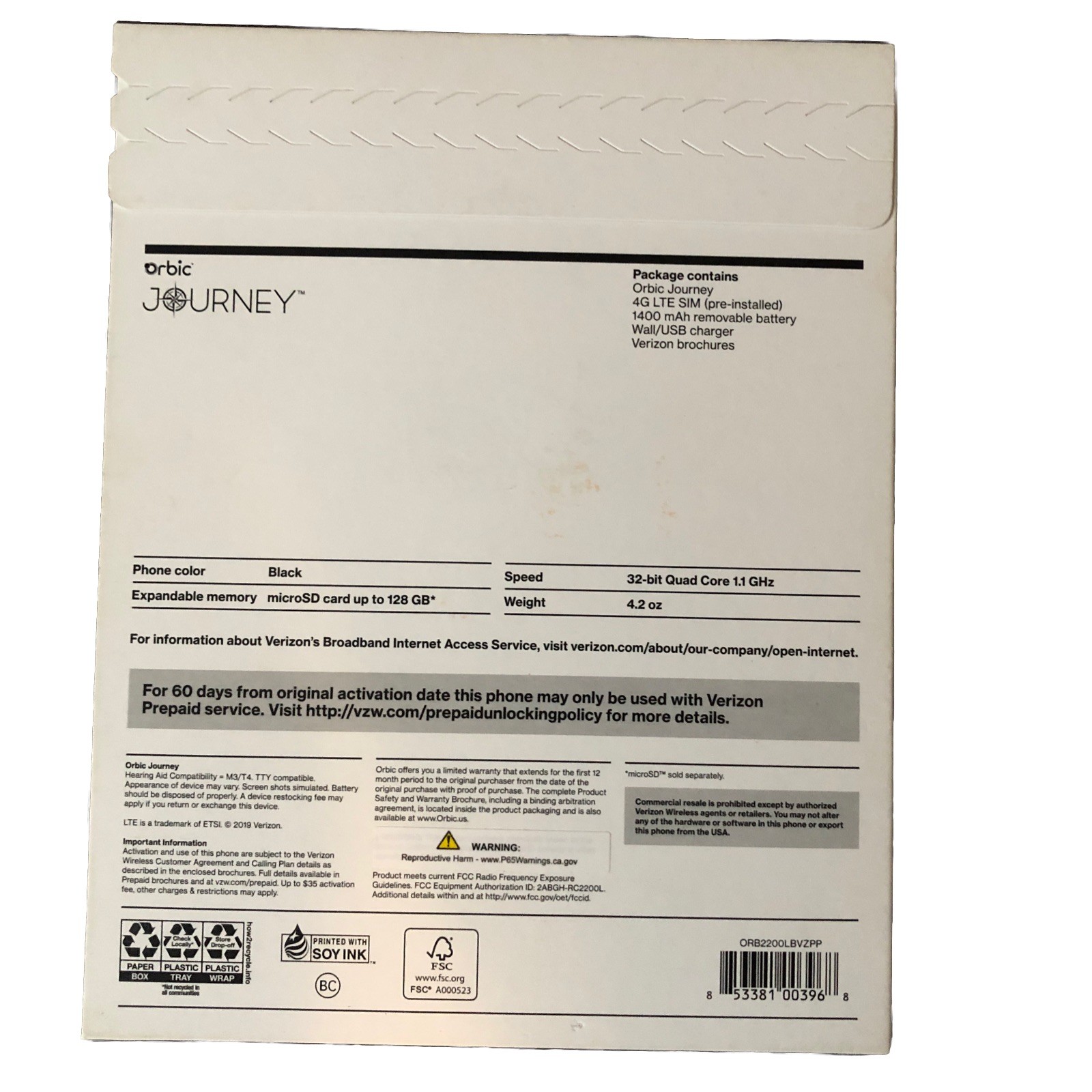 Orbic Journey Flip Phone Verizon Prepay Plan 32 Bit Quad Core 1.1 GHz Sealed Box