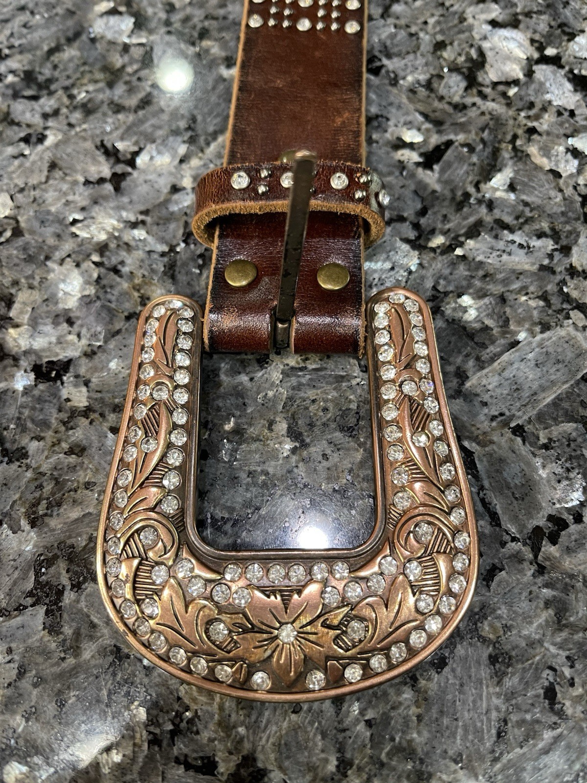 как выглядит Nocona Genuine Leather Dark Brown Western Style Rhinestone Belt Size Medium фото