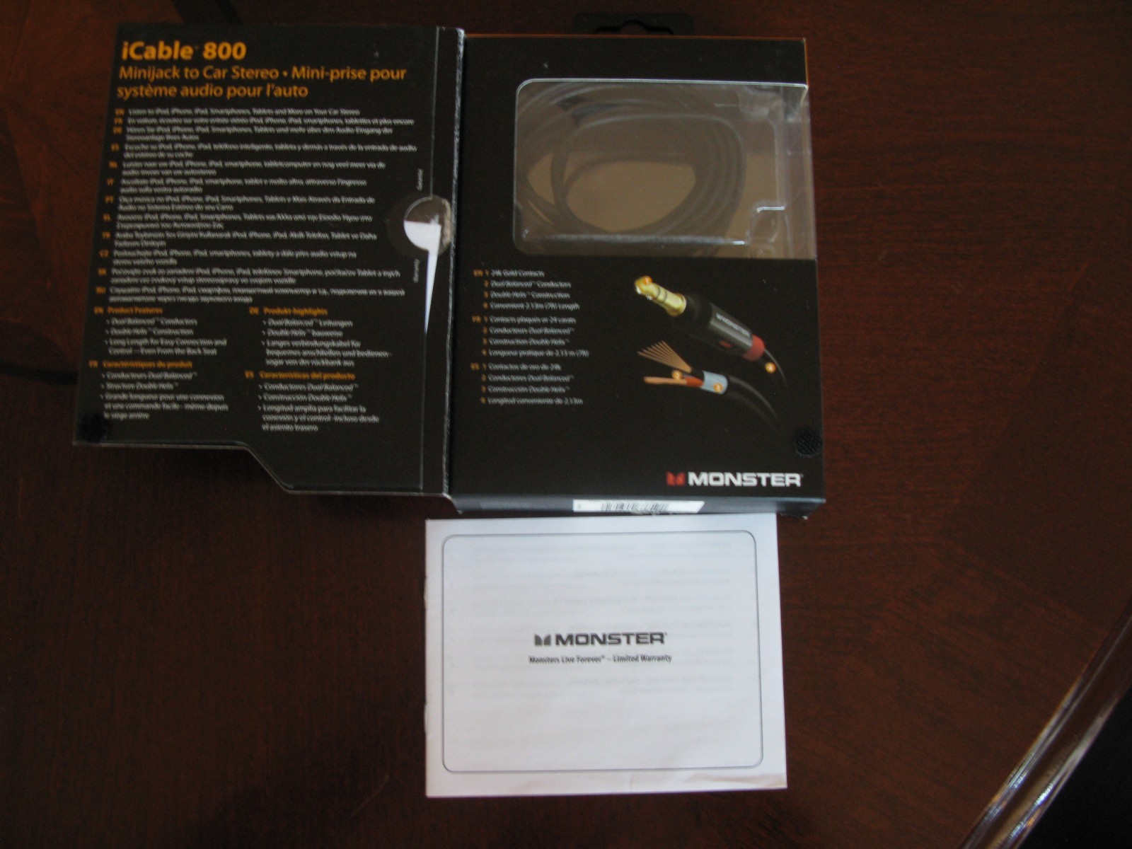 Monster iCable 800 Auxiliary Input Cable For Car iPod, iPhone, Samsung - 7 Ft