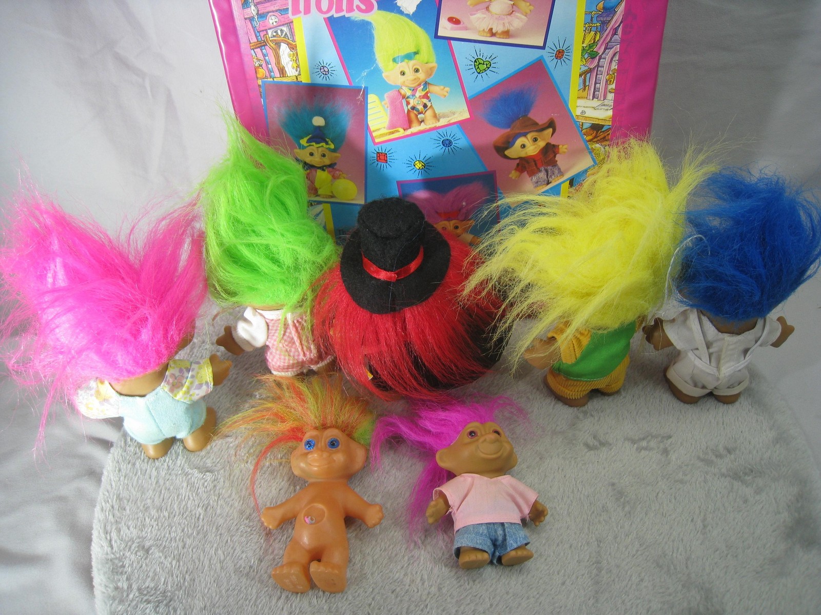 Vintage 1992 Treasure Trolls Lot 10 Dolls w/ Outfits Carrying Case Ace Novelty