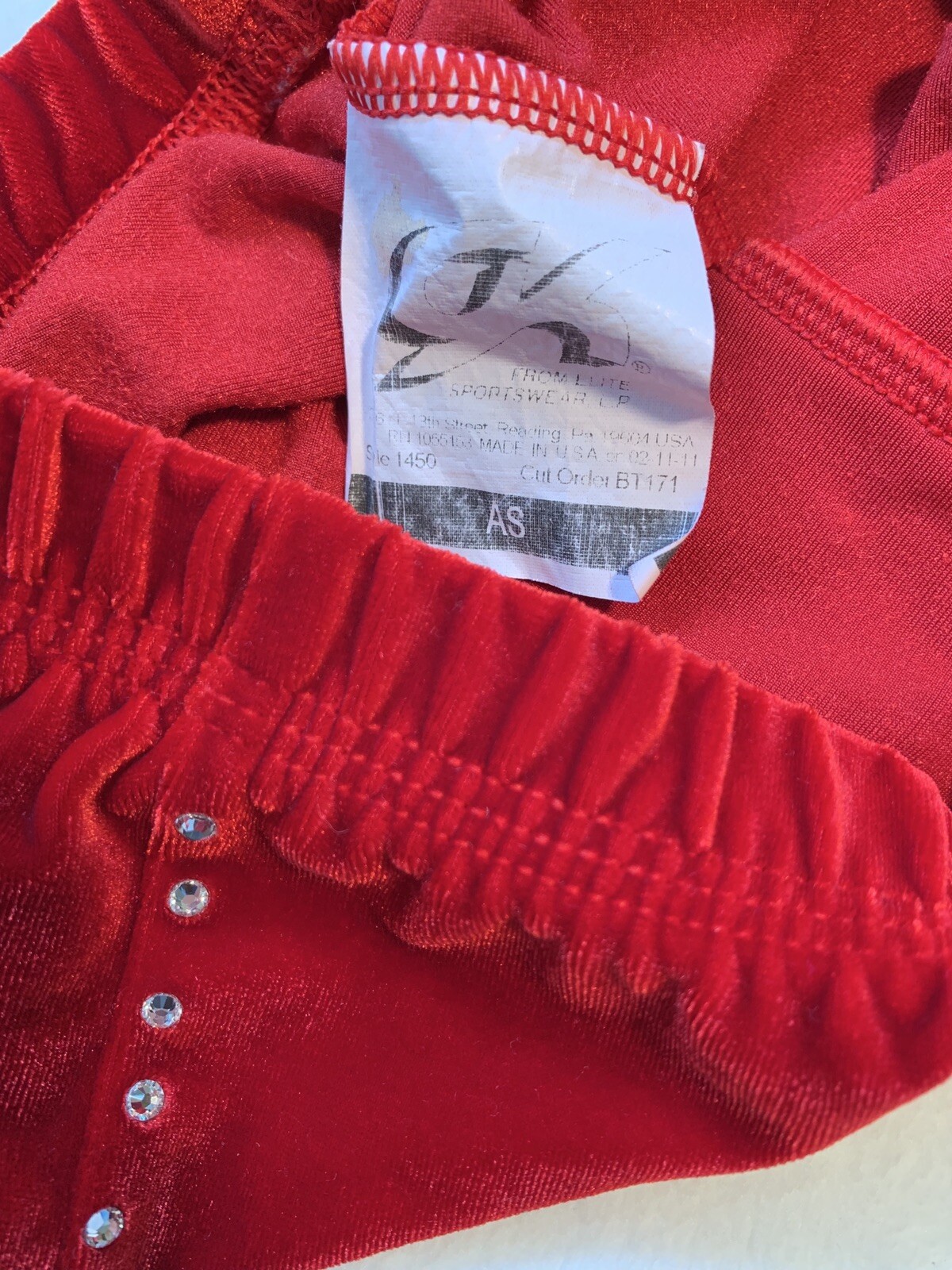 как выглядит GK Elite SHORTS Leotard RED Velvet Velour RHINESTONES Gymnastics MINI Bar SZ: AS фото