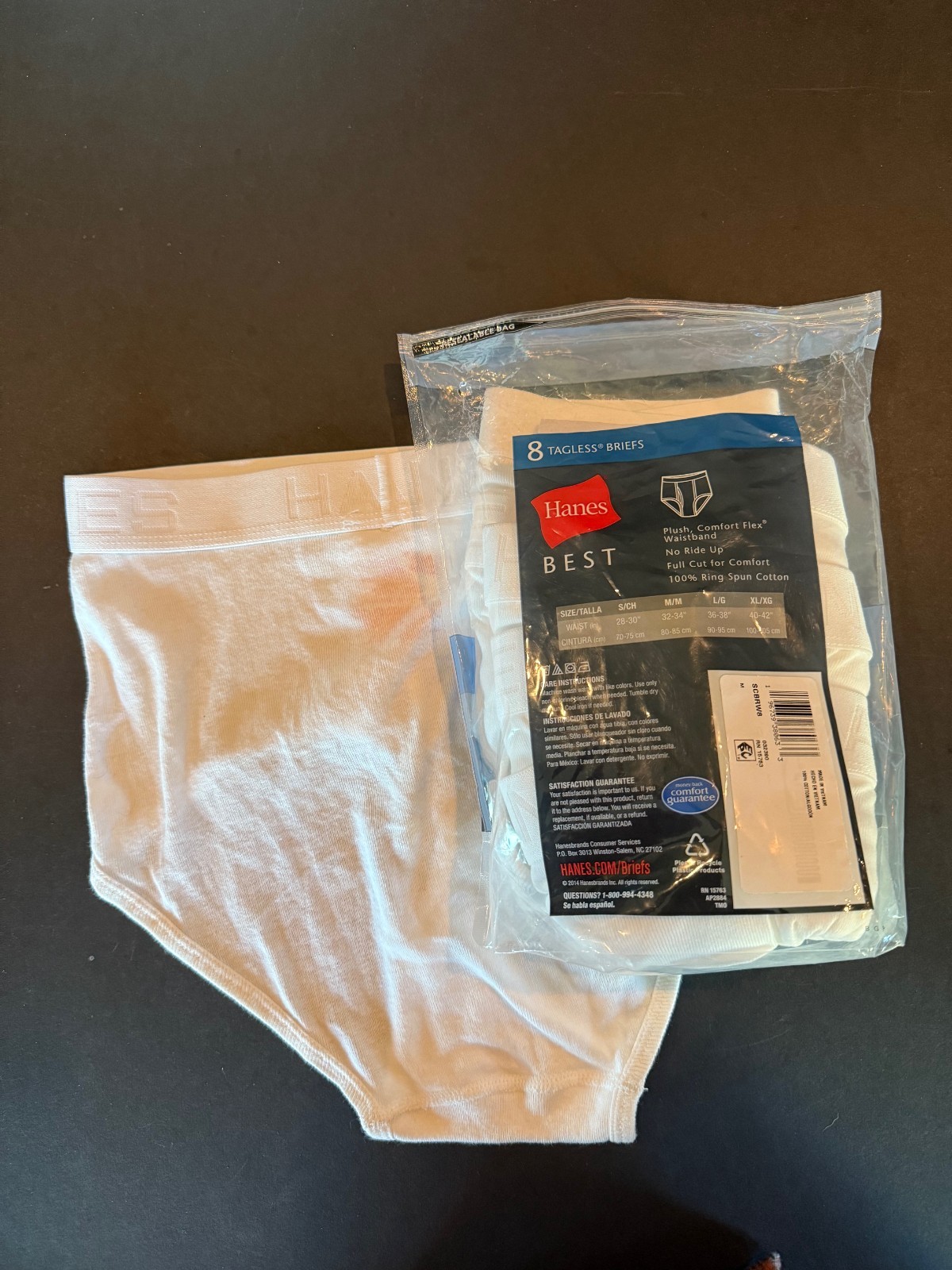Large Print On Wide Waistband Hanes Men's Briefs White Size: M Classic Fit/TWs