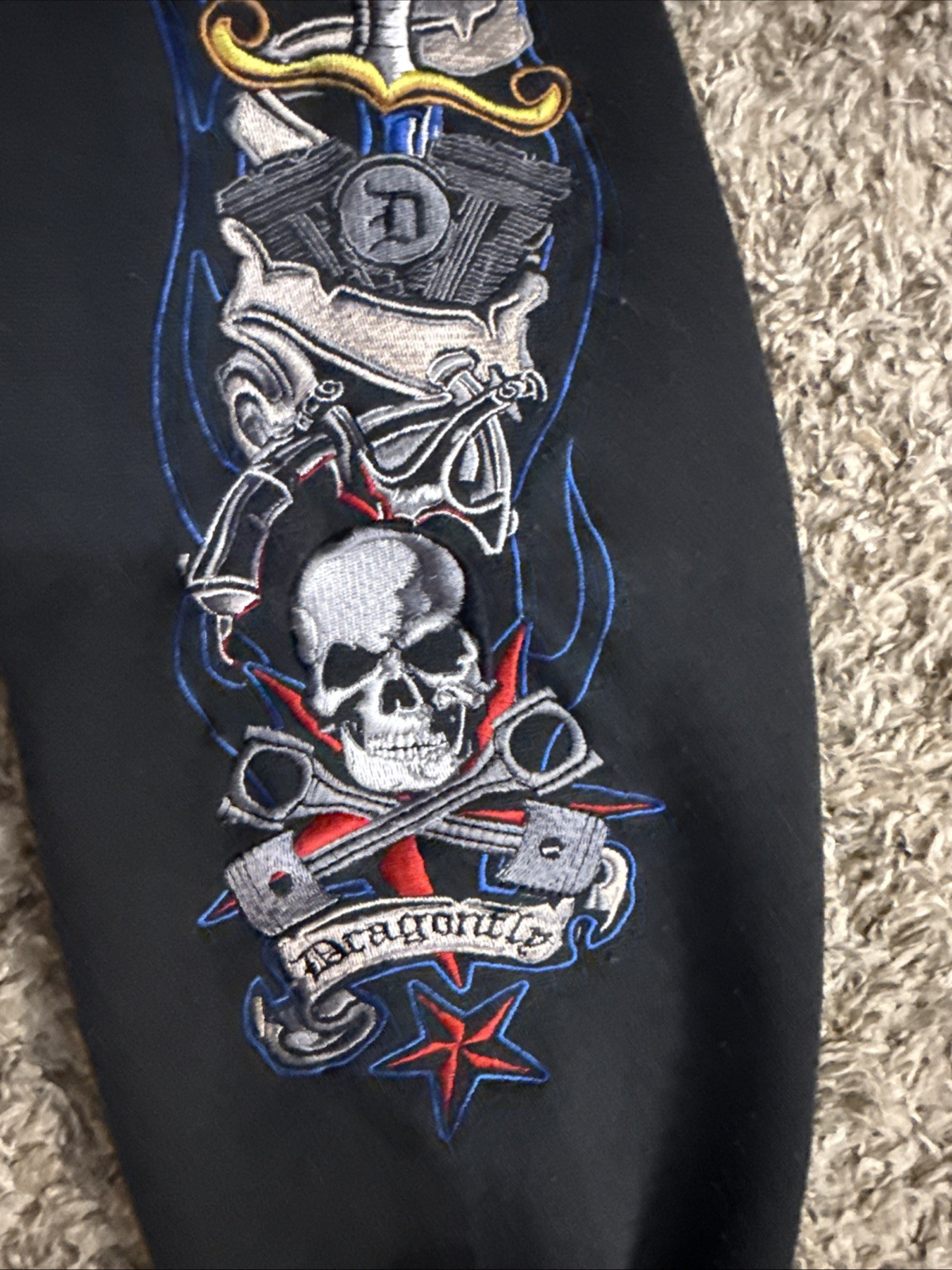 как выглядит VTG Y2K Dragonfly Clothing Company Embroidered Sleeves Large Hoodie JNCO Style фото