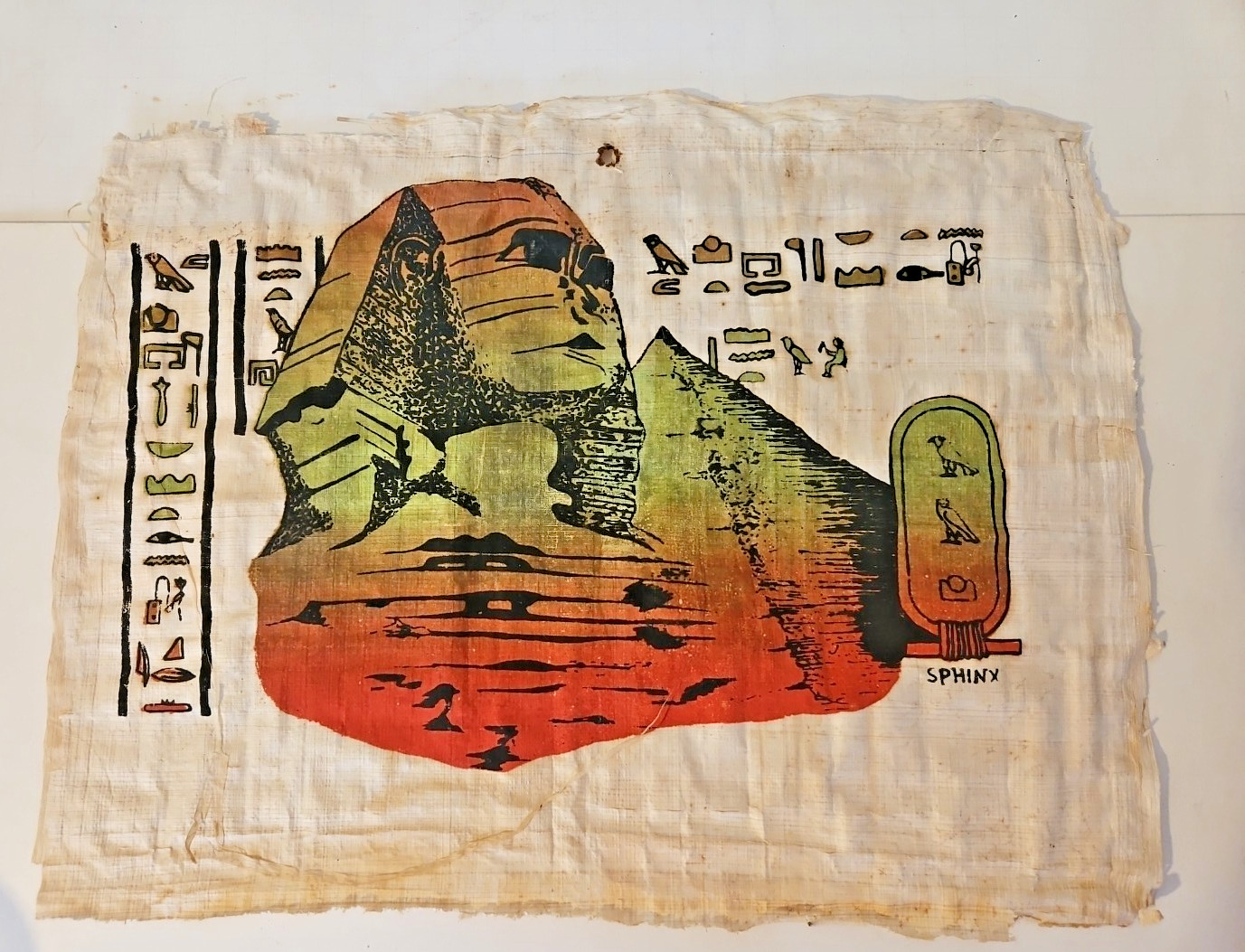 • Lot of 7 Hand Painted Egyptian Papyrus Art Prints Hieroglyphic Wall Decor
