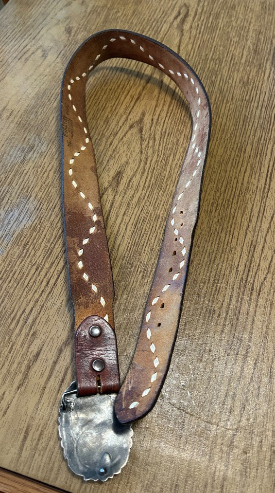 Likely Navajo sterling silver feathers turquoise coral buckle and belt 34