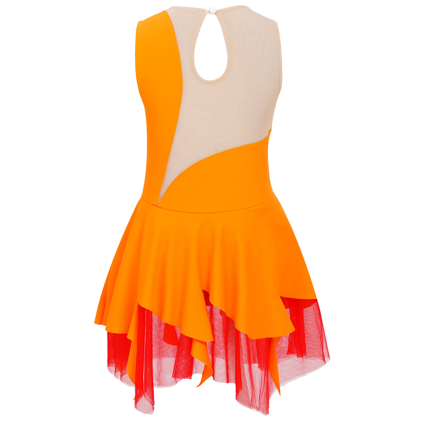 как выглядит Kids Girls Dancewear Irregular Hem Dresses Performance Leotard Dance Dress Tutu фото
