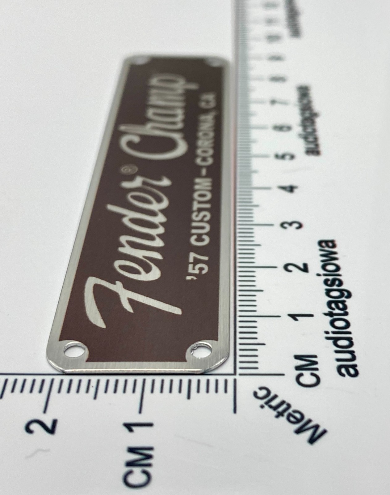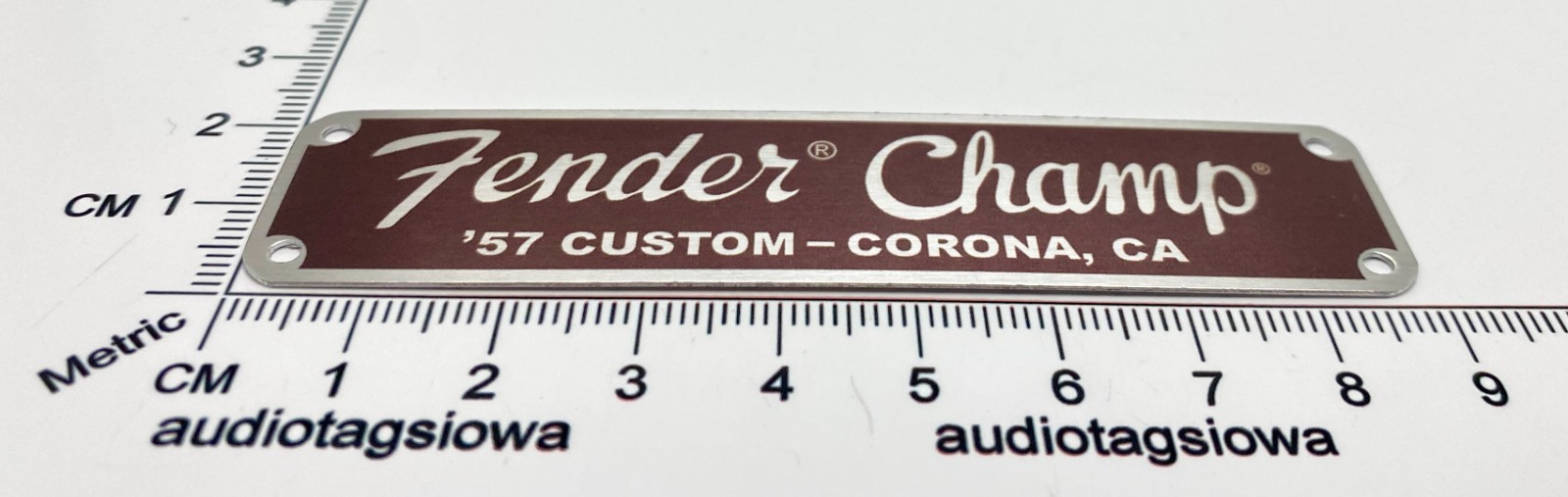 как выглядит Fender Champ Logo for Amp or Case Badge Custom Made Aluminum with Screws фото