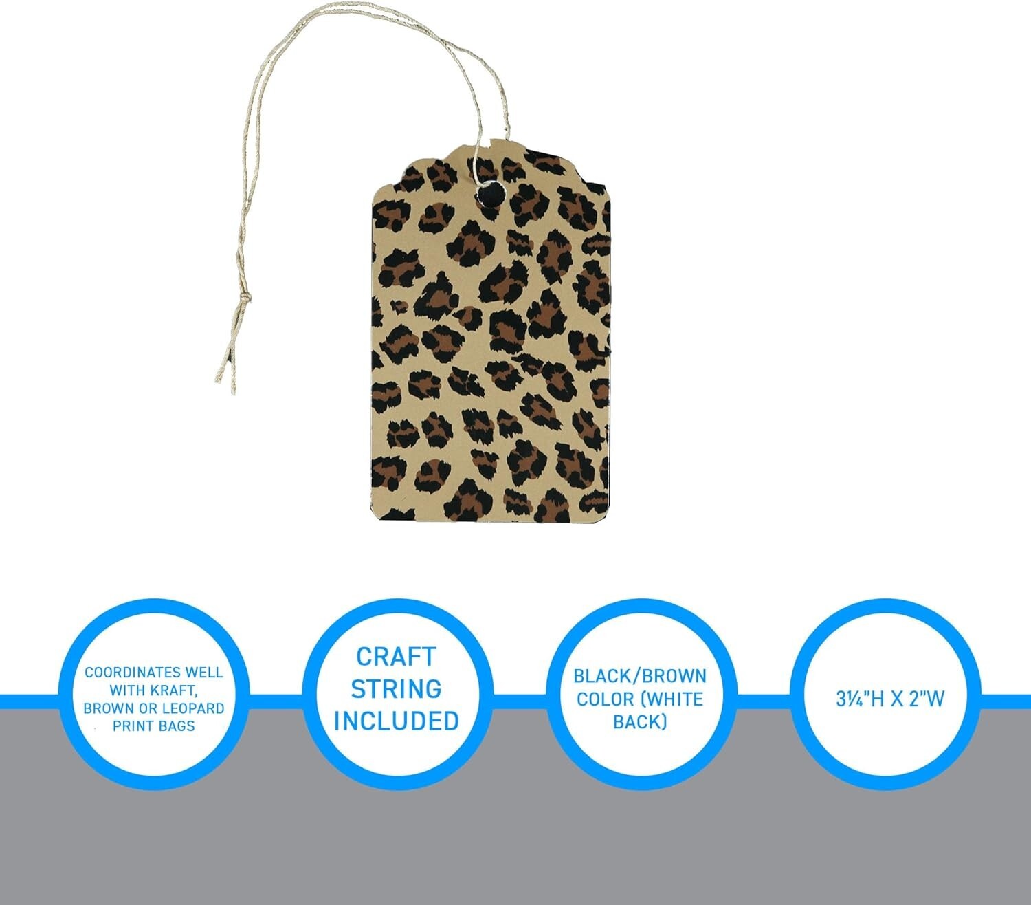 500 Strung Price Tags 3 1/4 x 2 Black Brown Leopard Back White String Cheetah