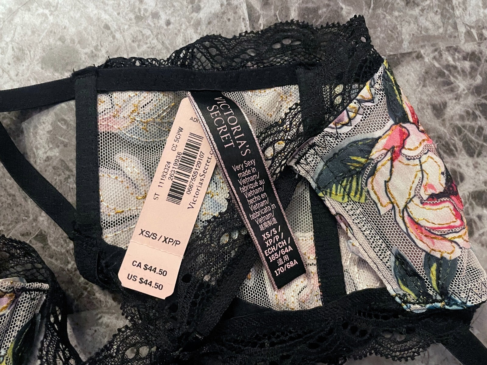 как выглядит NWT VICTORIAS SECRET XS/S PINK GREEN FLORAL MESH BLACK LACE GARTER BELT фото